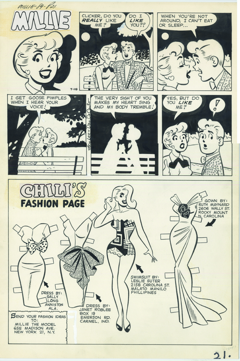After paper dolls faded from the Sunday funnies pages, they remained a staple of comic books in titles like Millie the Model, Betty and Veronica, Katy Keene — who just turned 80 — Patsy Walker, and My Little Margie. Any comic that featured pretty females, and even some that didn’t, occasionally had paper dolls, if only as a page filler.