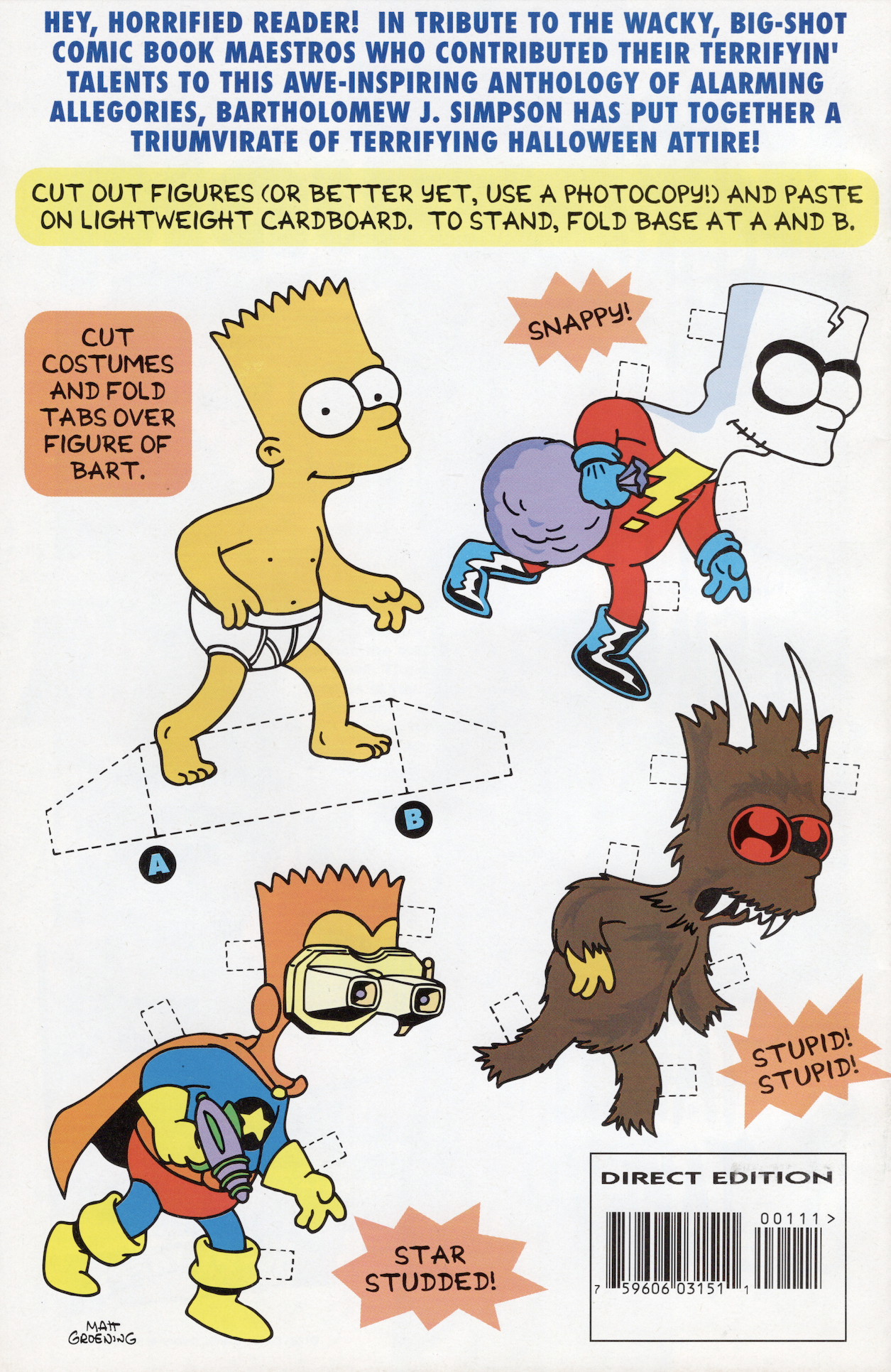 Naturally, after I became a comic book artist, my love for paper dolls gave me the desire to create some of my own. The first one I tried my hand with was in Bart Simpson’s Treehouse of Horror #1, in which I drew Bart in his tighty whities, with costumes inspired by characters associated with the three guest writers of the issue, Jeff Smith, Mike Allred, and James Robinson.