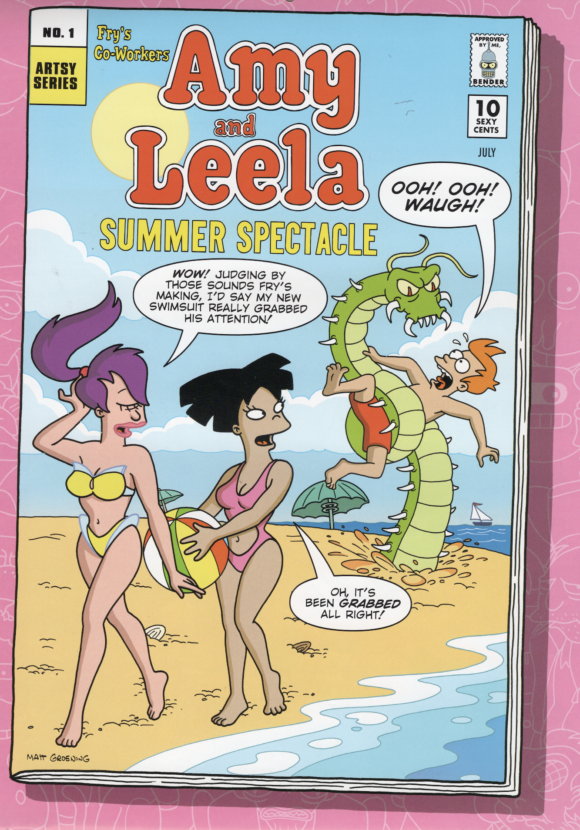 Unfortunately, we didn’t assign credits to each image for this calendar, only a general list of artists who worked on it. I drew a few of them from Scott’s layouts, such as the Betty and Veronica parody “Amy and Leela Summer Spectacle,” and “The Flesh,” but I find myself unable to identify the individual artists on each piece.