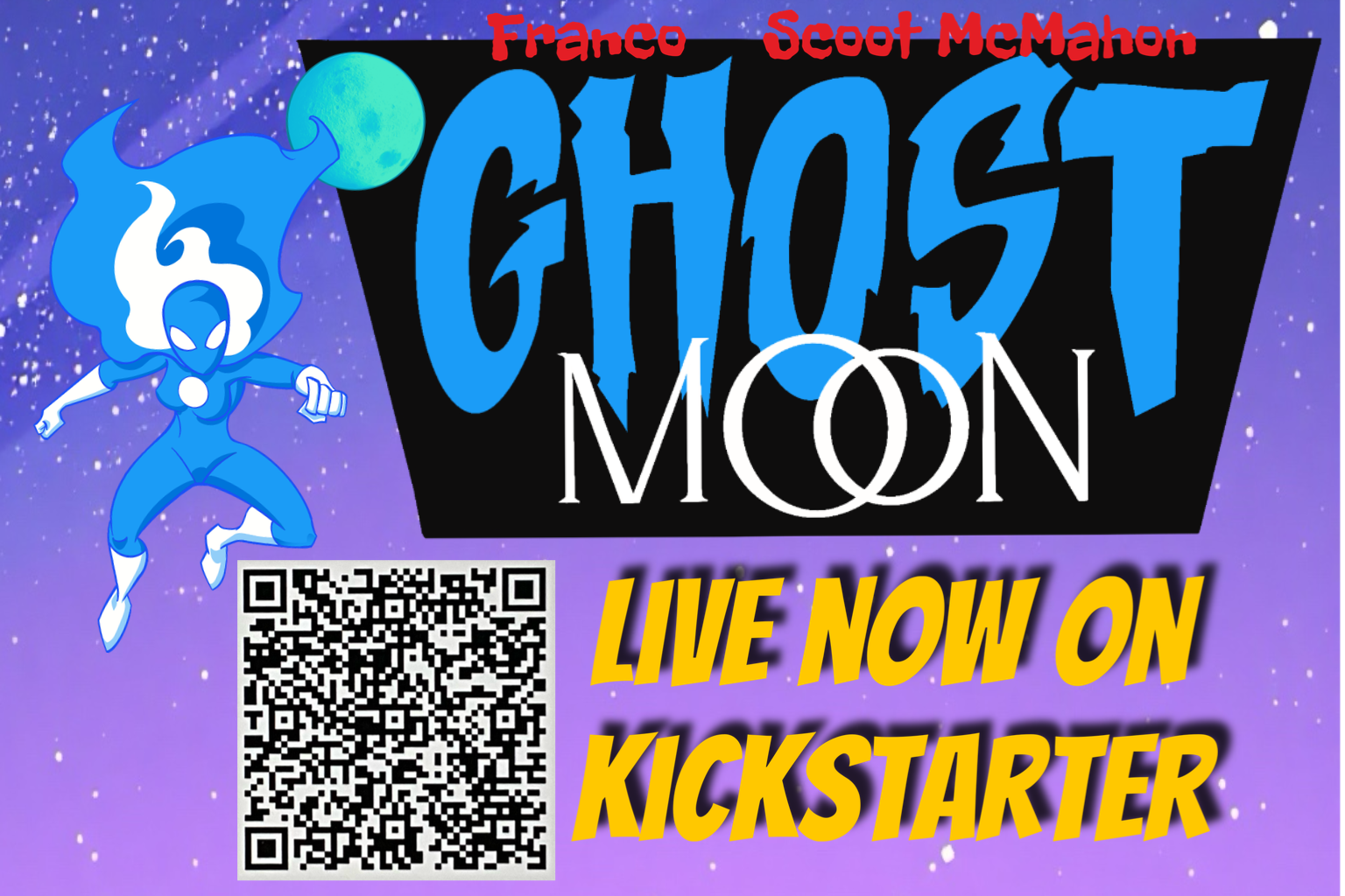 Back in the day, I did my share of vampire stuff. Love vampires. And my last book for “older” readers was The Green Team: Teen Trillionaires for DC Comics in 2013. Now, I’ve got a new one with my pal Scoot McMahon (my partner in Ninja Kaiju) — Ghost Moon, a more traditional superhero book that’s now live on Kickstarter.