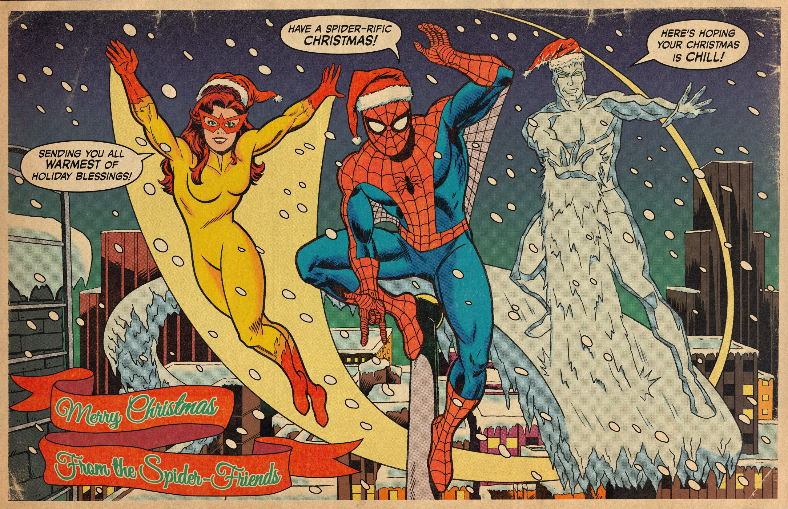Spider-Man and his Amazing Friends are having some quality hero-time together, and would like to wish you all a Merry Christmas!