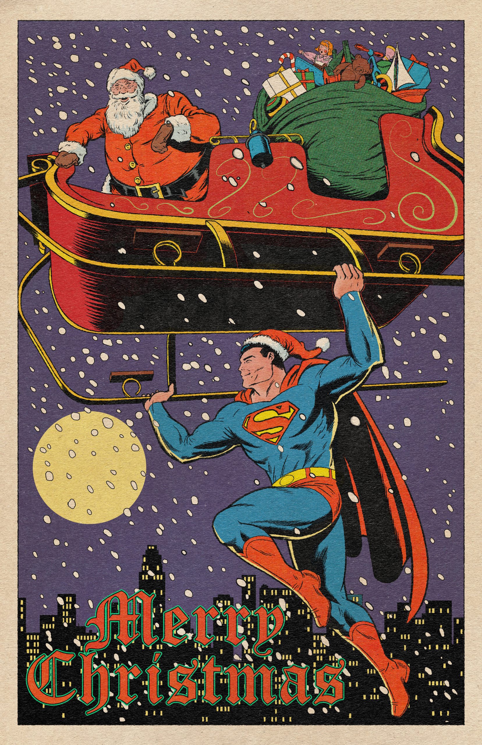 For example, Superman giving Santa’s reindeer the night off and helping to taxi Ol’ St. Nick around so he can deliver presents to the children of the world!