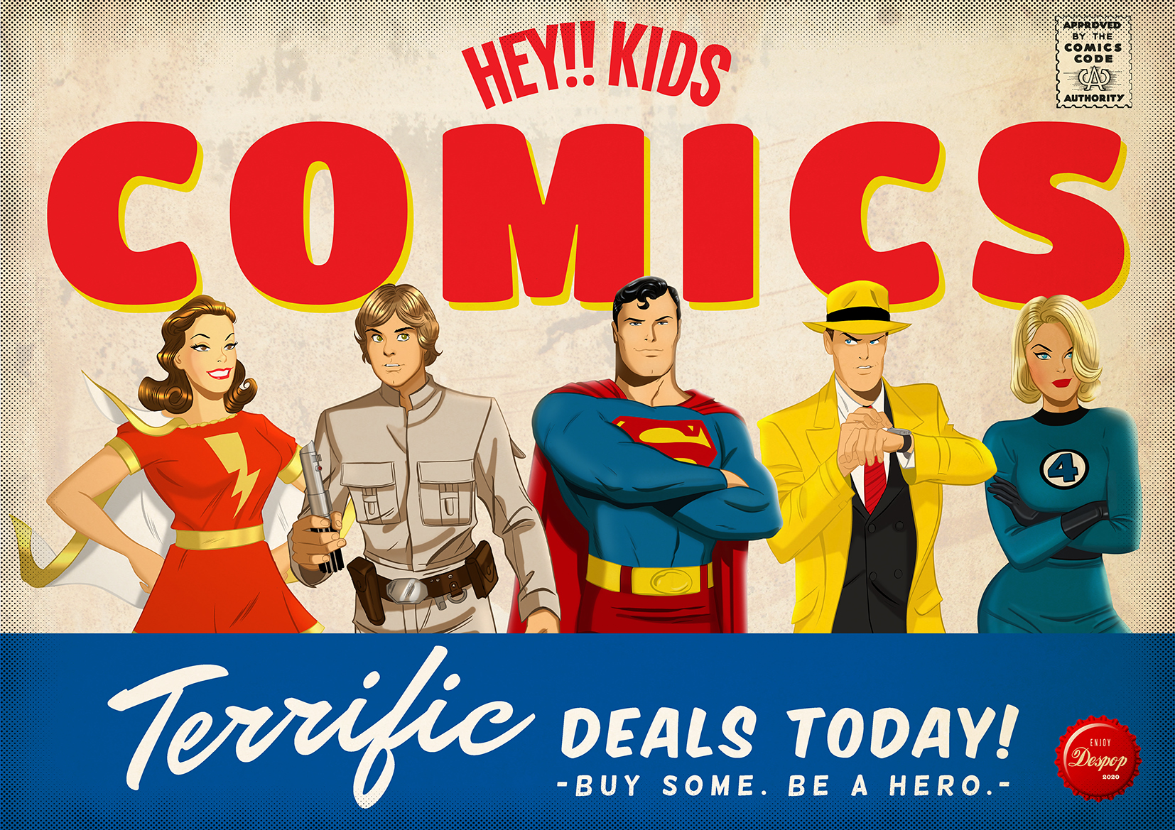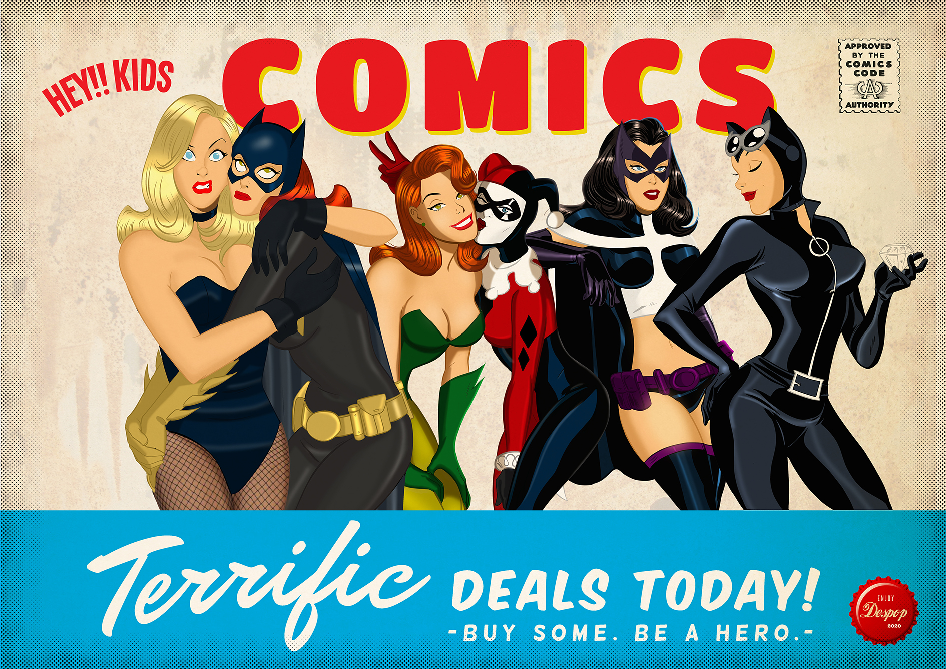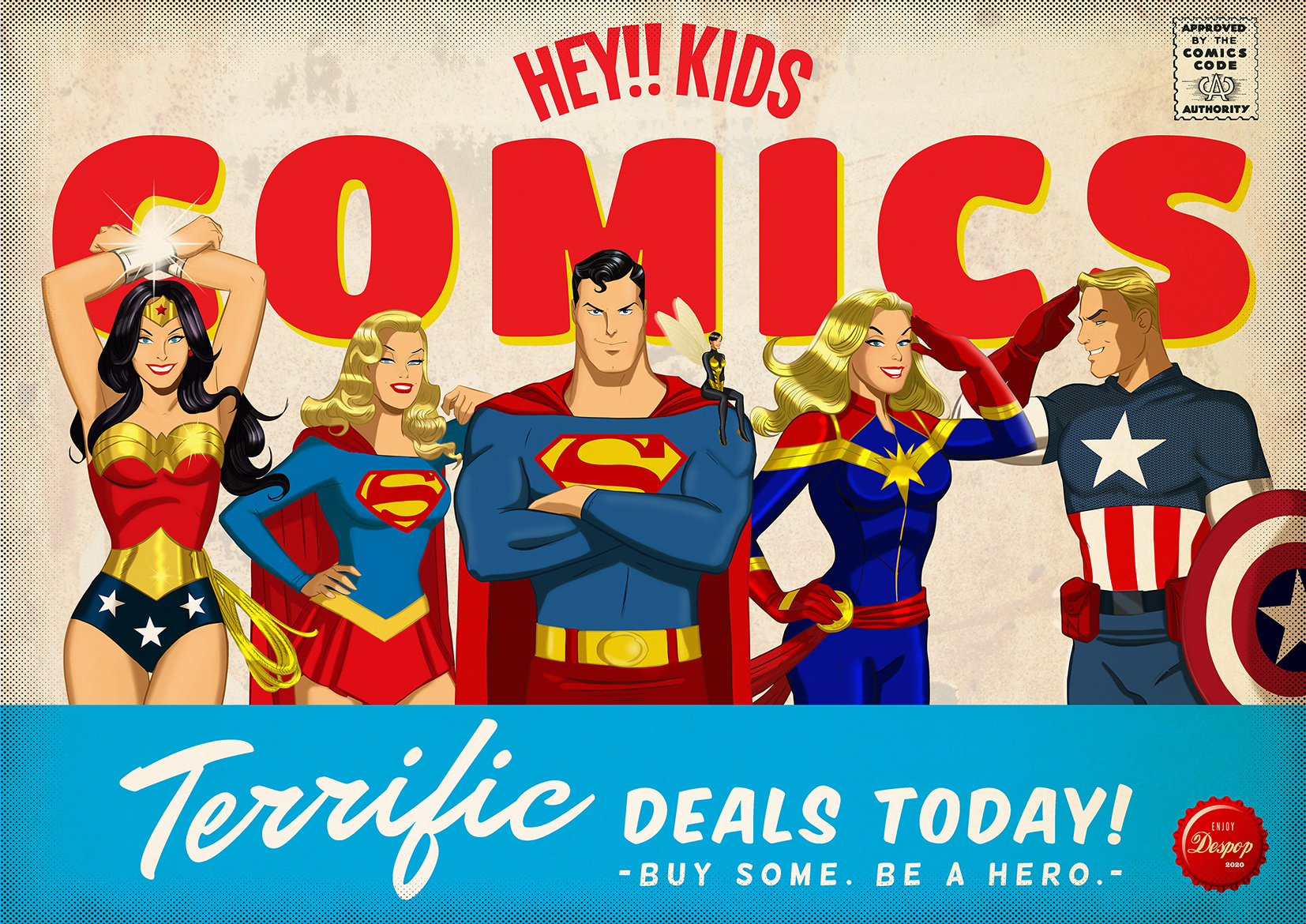 5. It would be fun to have one of these signs on a real spinner rack. The Wonder Woman/Superman sign might be my favorite.