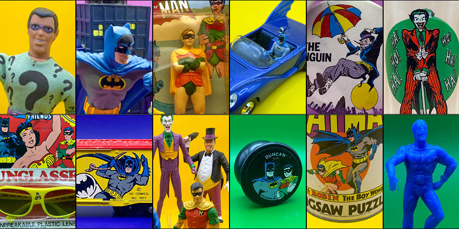 From milk cartons to music boxes, from toys to school supplies, these became the definitive images of some of pop culture’s most famous characters for at least two generations. Let’s roar out of the Batcave and take a look at 13 examples of these famous pinups translated into other types of merchandise, many in three dimensions!