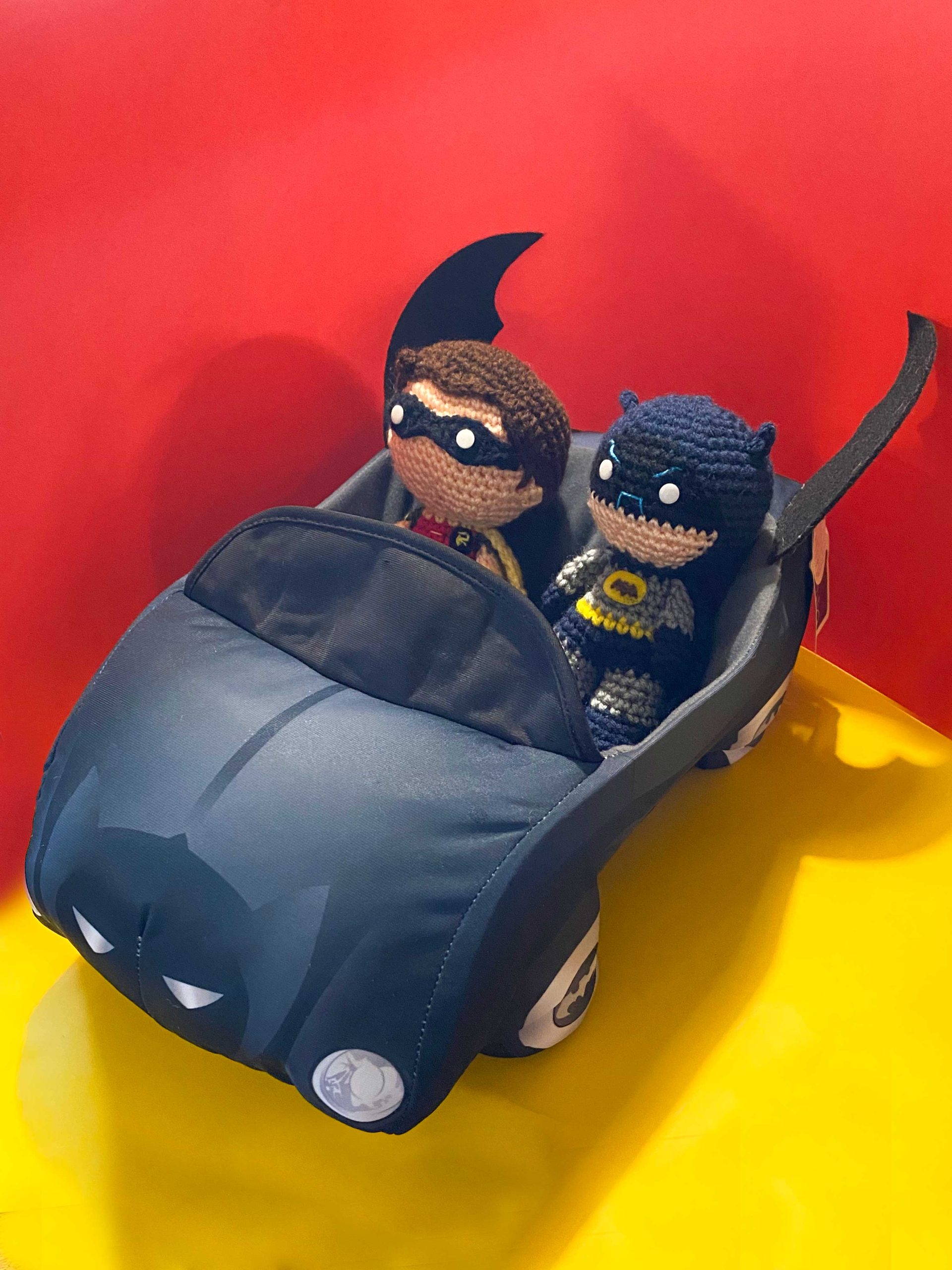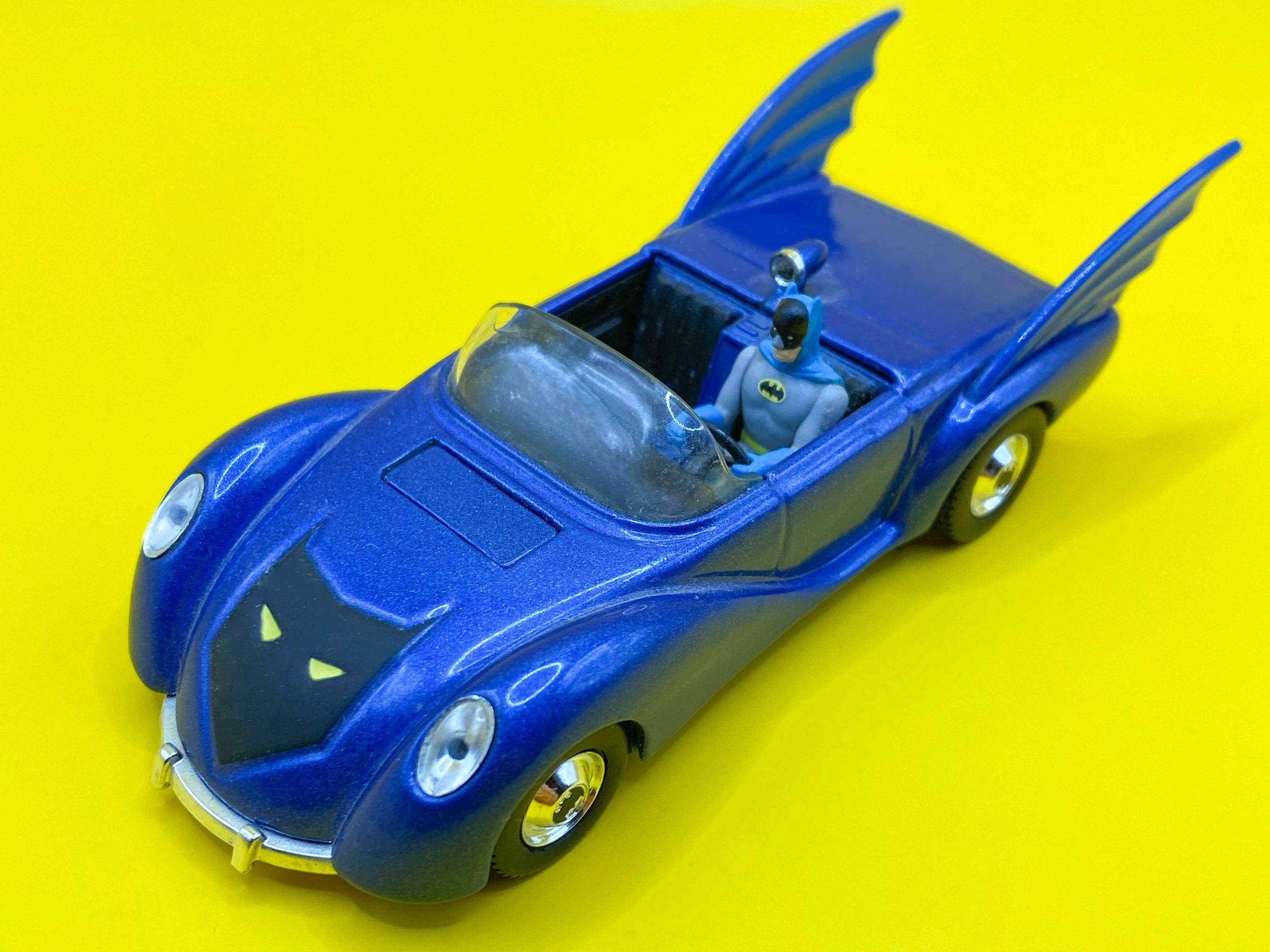 Stuffed Batmobile – Build-A-Bear Workshop, 2019. One of the most peculiar appearances of the 1964 “New Look” Batmobile was released as recently as 2019 at Build-A-Bear Workshop of all places! The company has long had a history of making DC-themed stuffed bears and outfits, but their choice of this obscure ’60s design for a “vehicle” for their bears was a welcome one, even if it is a headscratcher. I display mine with the crocheted Batman ’66 figures my daughter made for me a few years ago, recreating that classic pinup image!