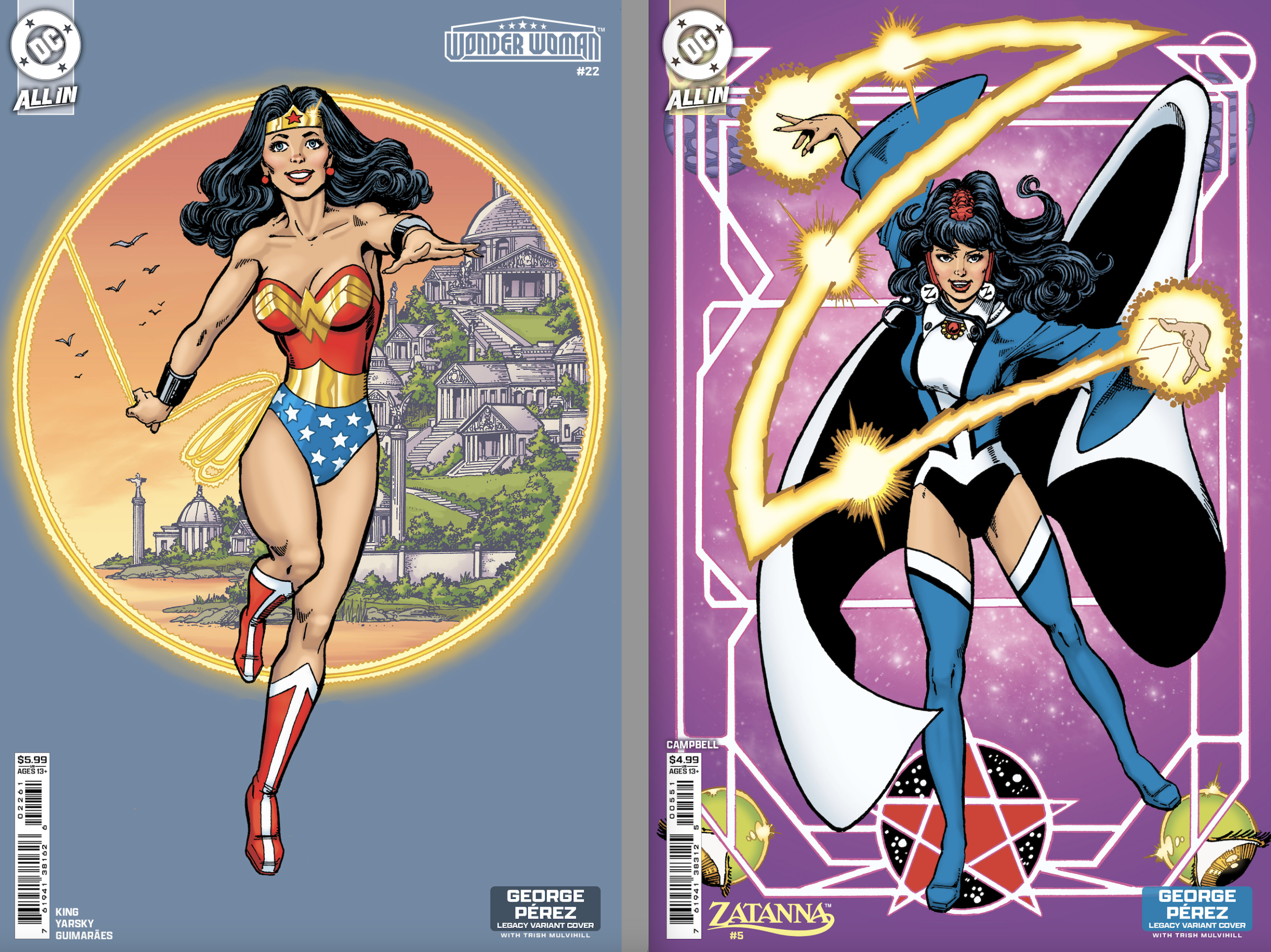 Wonder Woman #22 and Zatanna #5, DC. Featuring the next two George Perez ’80s postcard variants.
