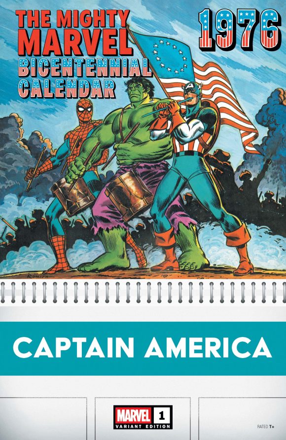 Captain America #1, Marvel. Featuring this Luciano Vecchio variant that riffs on 1976’s Bicentennial Calendar — and one that presents John Romita’s original image:
