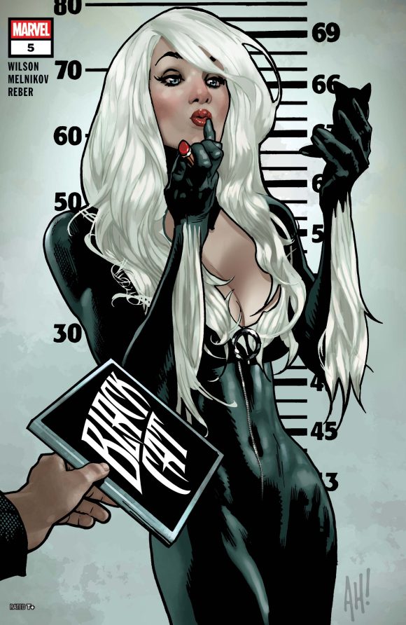 Black Cat #5, Marvel. Dig Adam Hughes’ hilarious riff on his Catwoman #51 cover from 20 years ago.