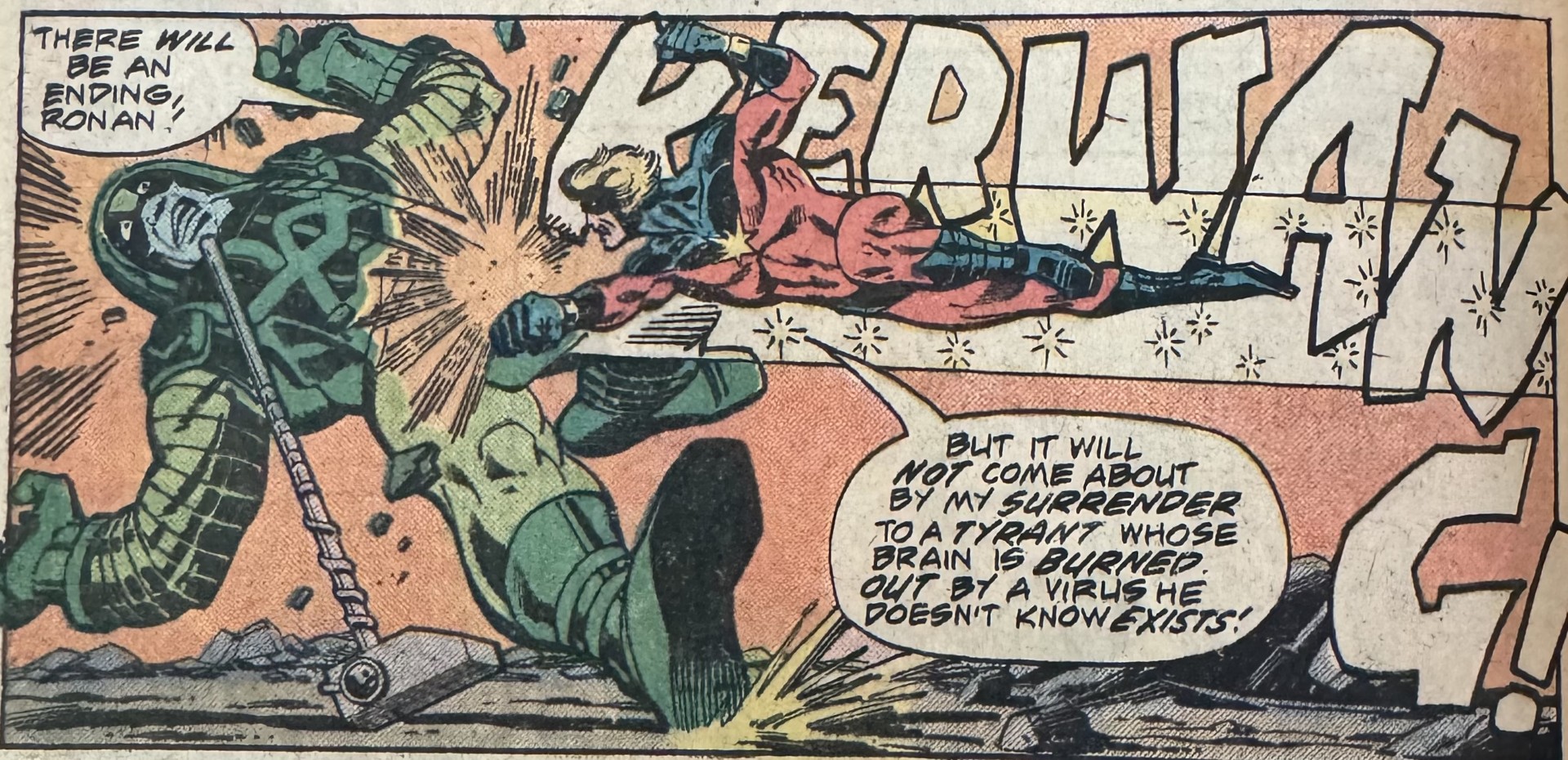 Ronan goes full Ronan — SPOILERS FOR A 49-YEAR-OLD COMIC — killing Tara, causing Mac-Ronn to declare he loved her. (But did she know that? Y’know that thing with Rick before? Hmmm.)