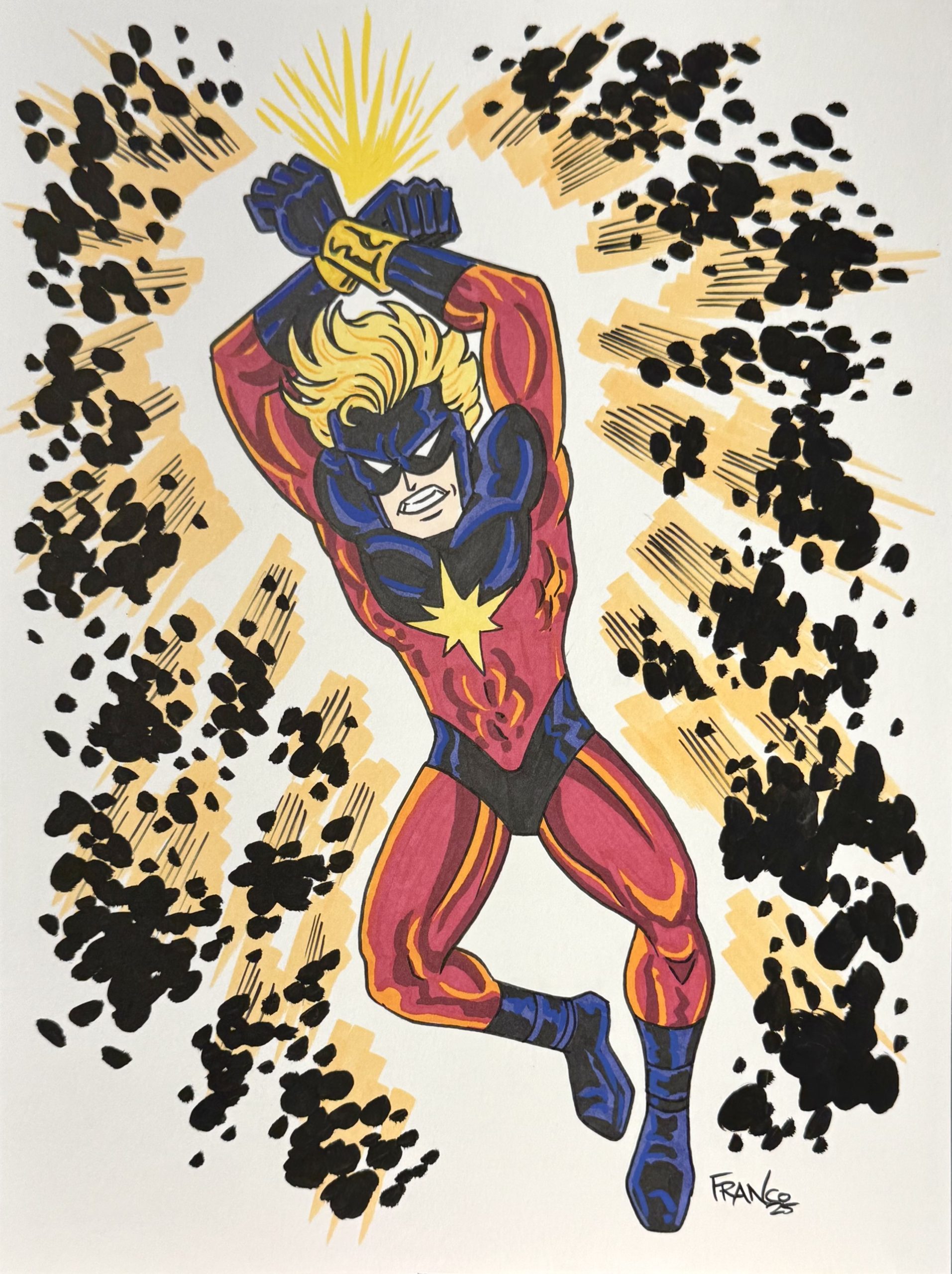 Decided to draw something from the interior. Full disclosure: As a kid trying to learn how to draw, I would often do something like this. Draw out the different poses in a book of the different characters. So this brought me back to those days when I got a new comic and would devour it. Story, art, the whole thing. I couldn’t decide between the two panels above, at first. But decided to go with the solo shot of the transformation into Captain Marvel. Here’s my version, affectionately after Al Milgrom: