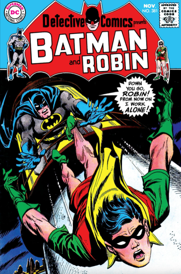 A seventh pin-up — Batman and Robin standing before a bat silhouette — for whatever reason didn’t make the cut. It was, however, used as a centerspread in April 19’s Batman #181, which also featured the debut of Poison Ivy: