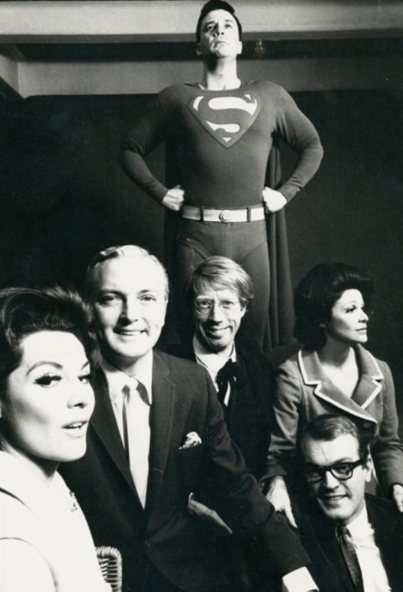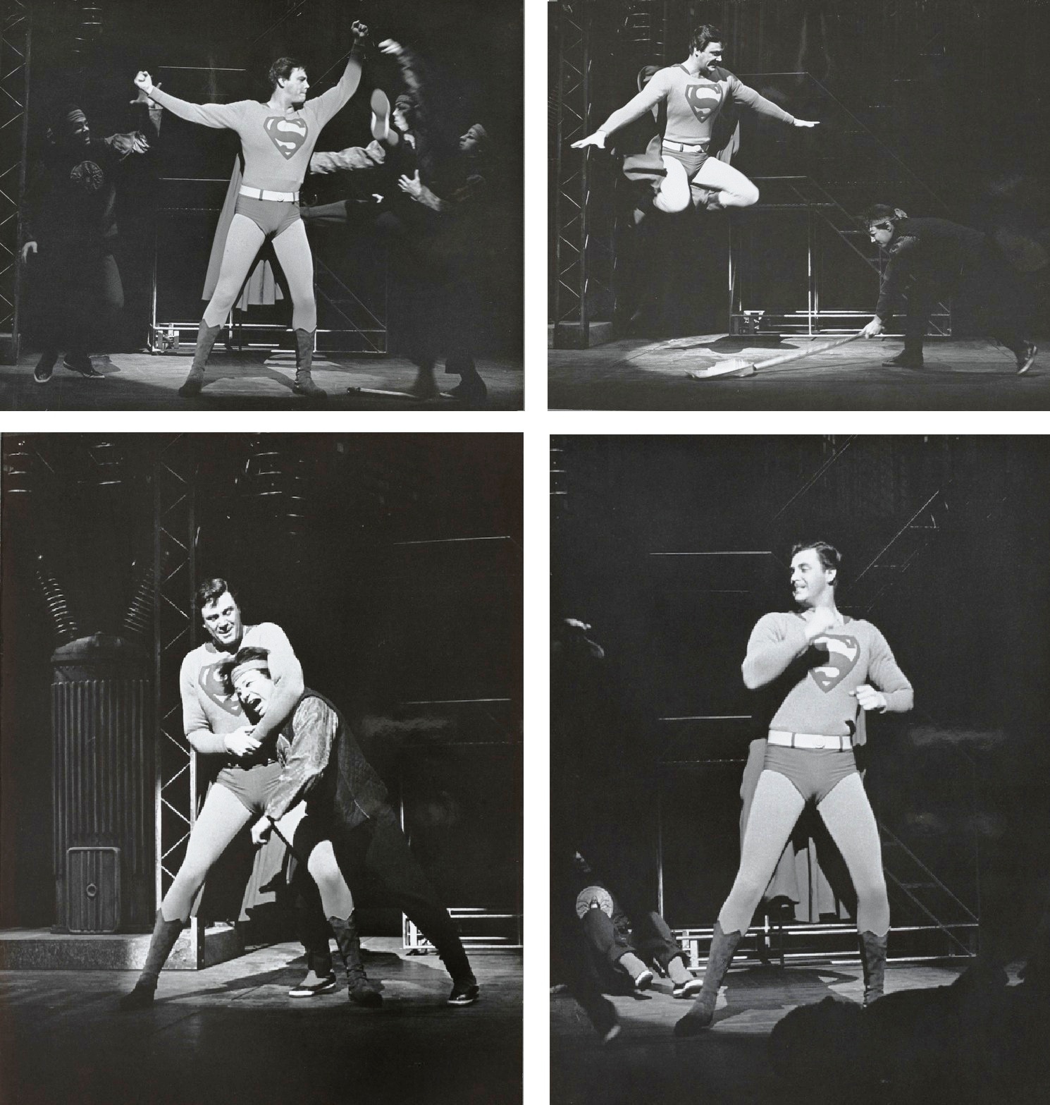 The musical’s star performer was Tony Award-winning actor Jack Cassidy (pictured second from above left), playing the Daily Planet’s egotistical gossip columnist Max Mencken. (Almost every character in the show was a new invention of Newman and Benton as DC limited the licensing to just a few of the Superman regulars.)