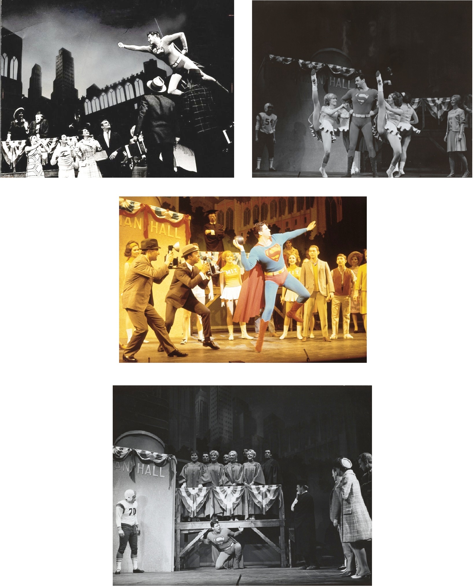 I saw a community theater version of the musical in the 80s. They did an incredible job with the sets and costumes! They even did the newsreel sequence, using the stock footage from the Broadway show film, but inserting their own filmed bits where Superman appears. It was really a lot of fun!