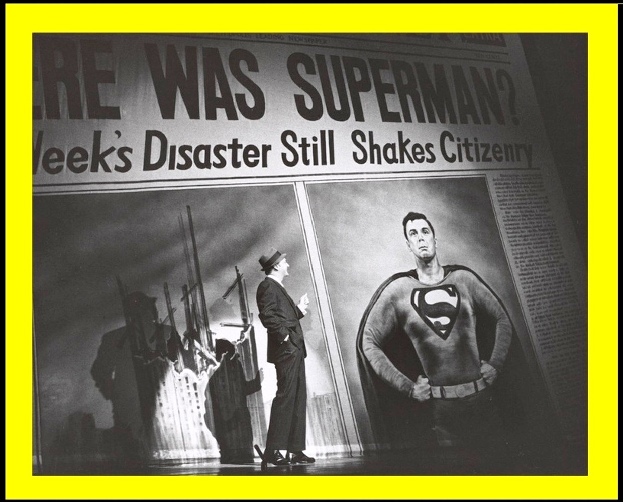 A rare, nearly five-minute film sequence about Superman (Holiday) used within the Broadway production has survived. (Note: The early sequences are from the 1948 Superman movie serial.)