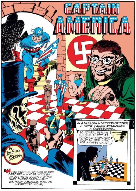 Captain America Comics #1 (Mar. 1941, Timely). Cap employing a “chess interrupt gambit” to disrupt a player’s plan.
