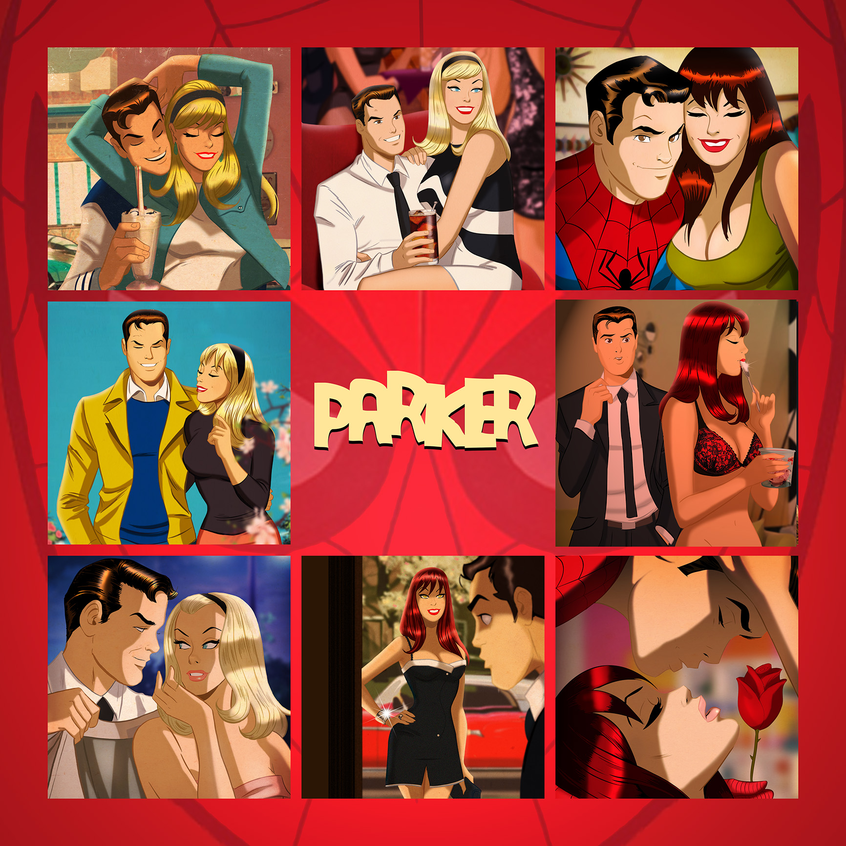 “Ever since I read 2022’s Spider-Man’s Tangled Web #11, by Darwyn Cooke and J. Bone, I’ve thought, ‘Imagine an animated/live action show called Parker,” sez Des. “Set in a Jet Age, go-go-boots version of the 1960s, Parker would follow one Peter Benjamin Parker: professional overthinker, part-time genius, full-time disaster magnet. By day, he’s juggling school deadlines, chemistry books, and his thankless gig snapping photos for the ever-charming tyrant J. Jonah Jameson. By night? He’s swinging across the skyline as Spider-Man, trying not to crack his skull or his conscience. Easy, right? Wrong.