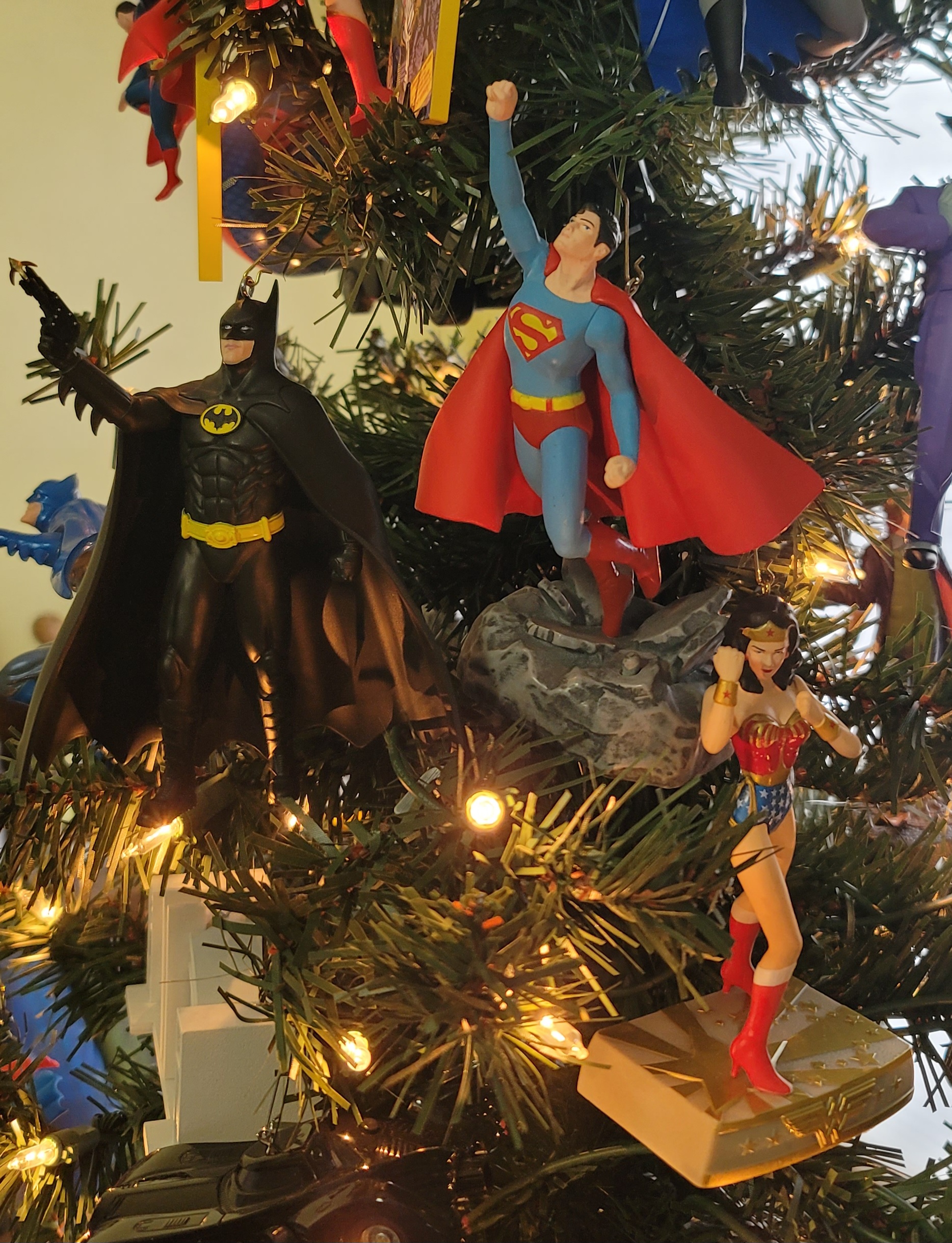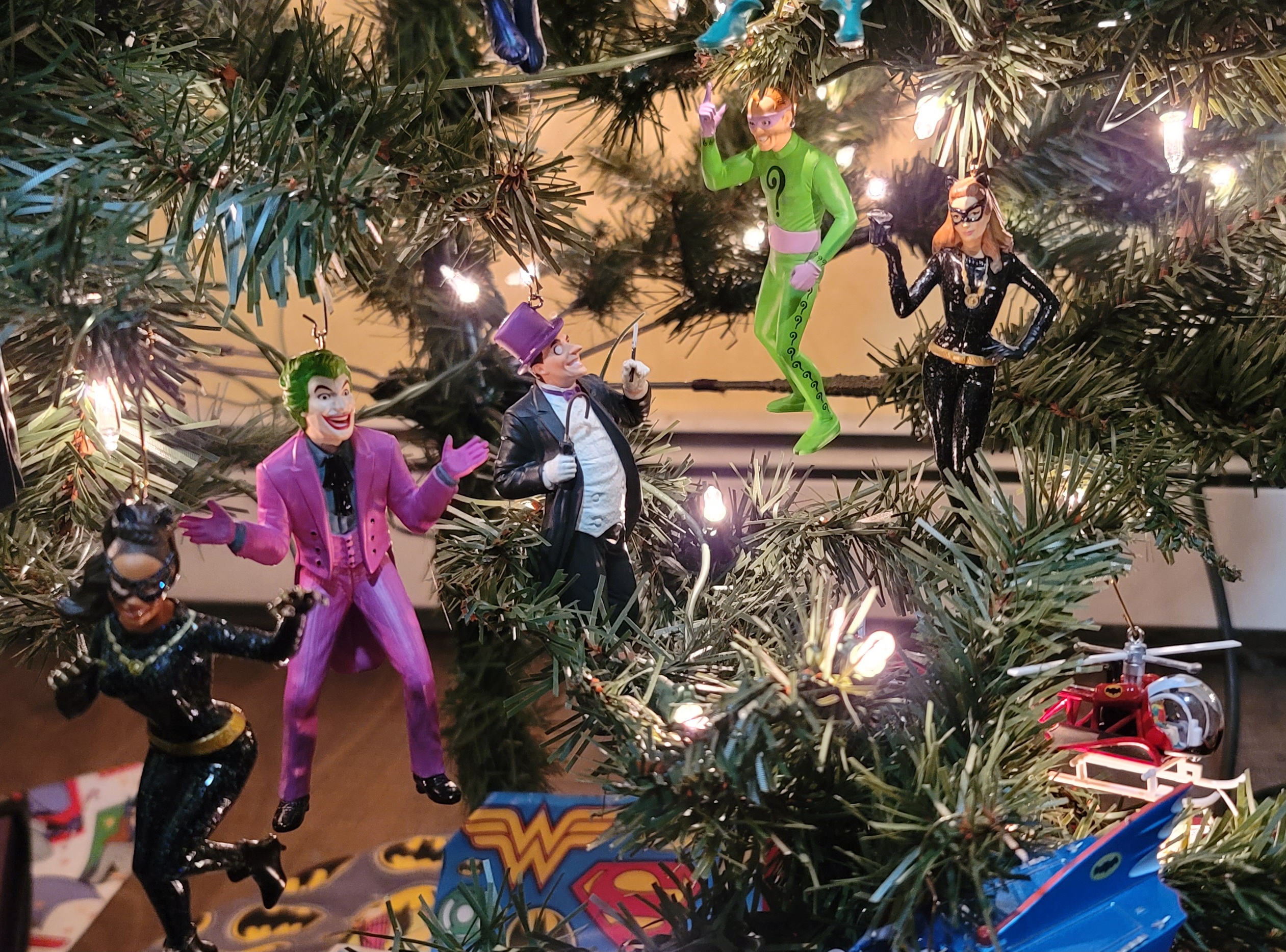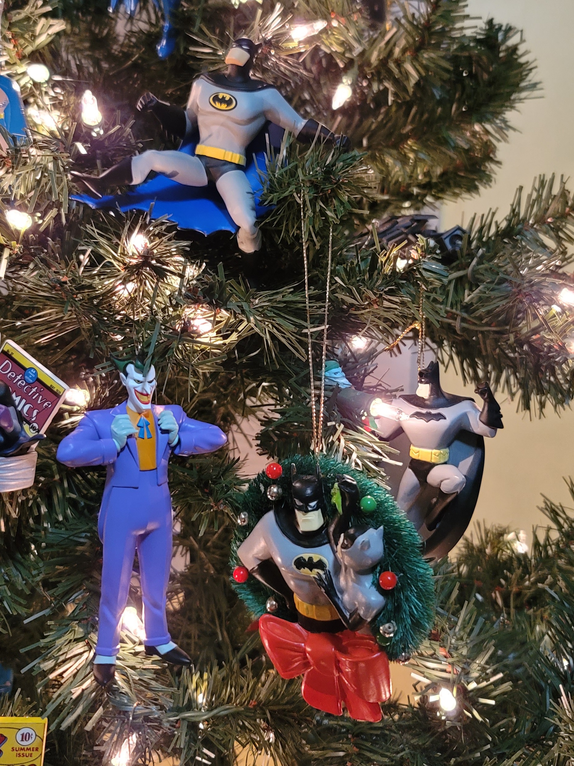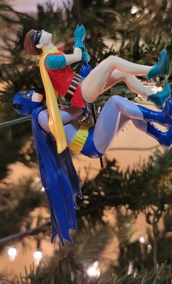 Also about the tree are various Batman ornaments because… he’s my Favorite Hero!