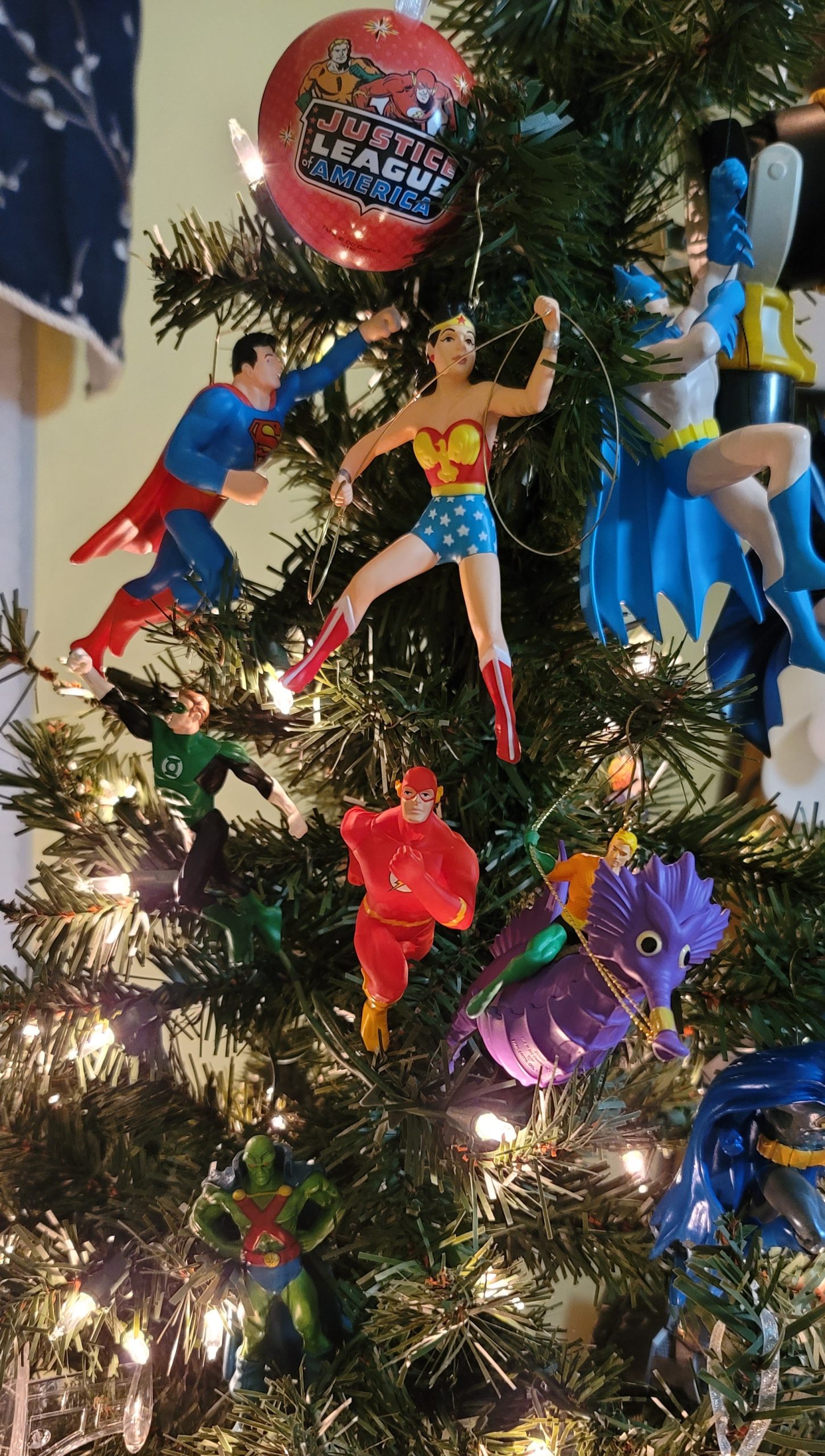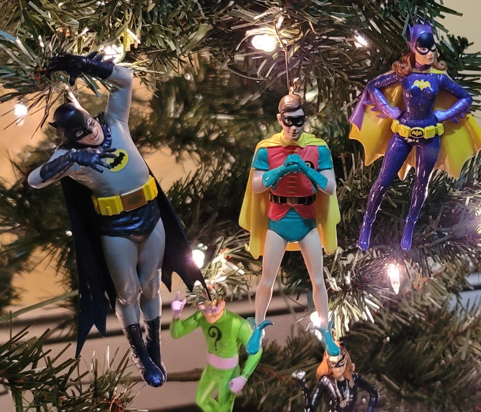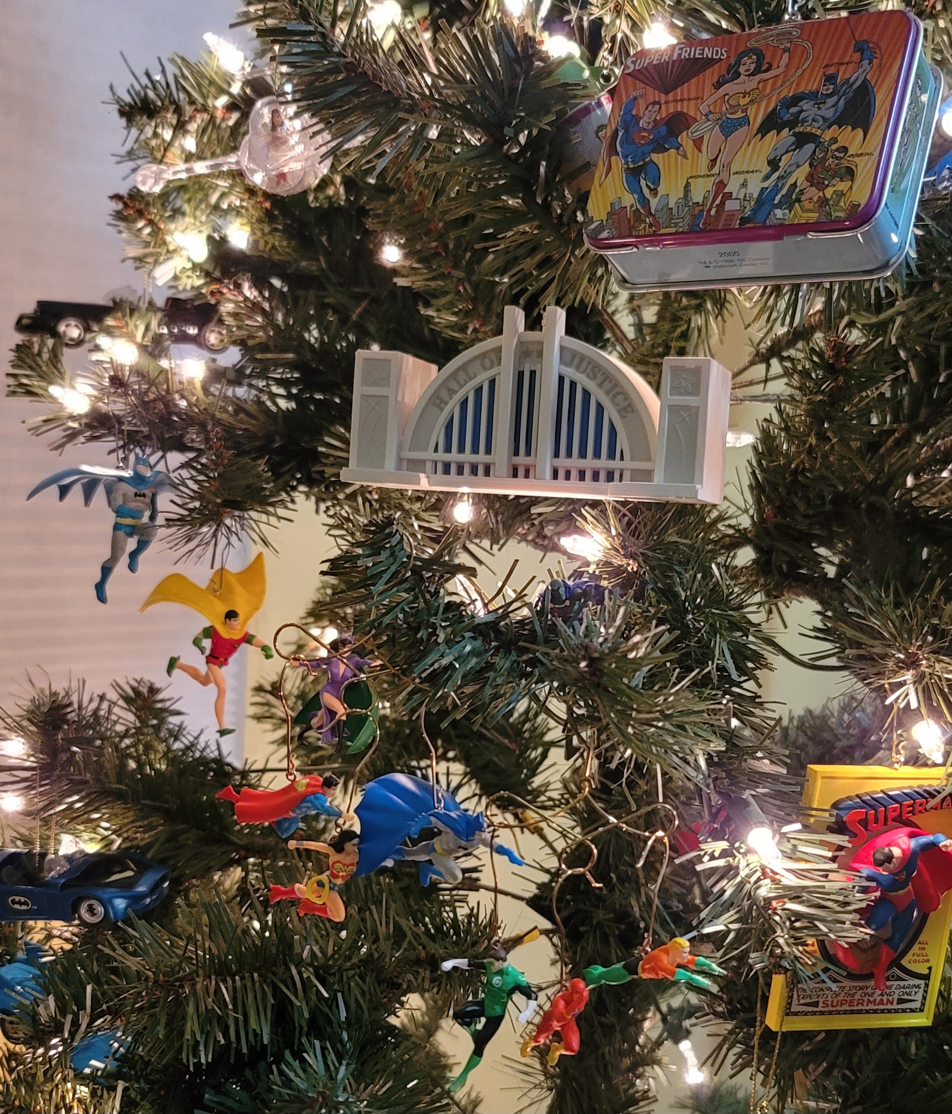 Also about the tree are various Batman ornaments because… he’s my Favorite Hero!