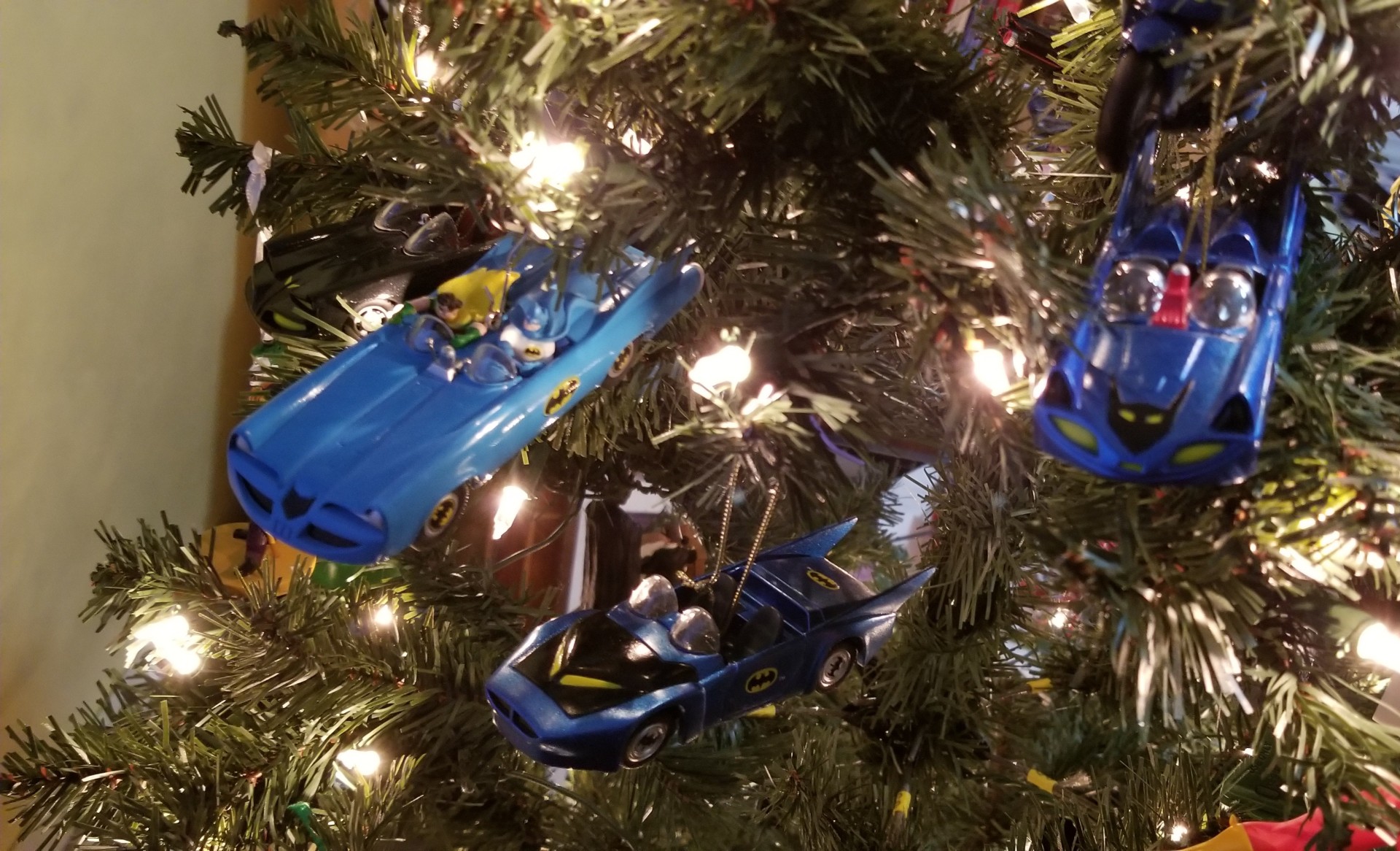 Also about the tree are various Batman ornaments because… he’s my Favorite Hero!