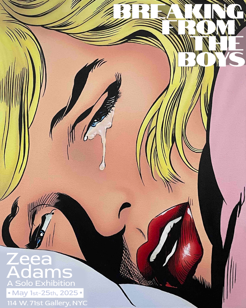 Zeea Adams: Breaking From the Boys will run from May 1-25, 2025 at 114 W71 Arts, located at 114 West 71st St. on Manhattan’s Upper West Side. An opening reception will be held from 6-10 p.m. on May 1 at the gallery.