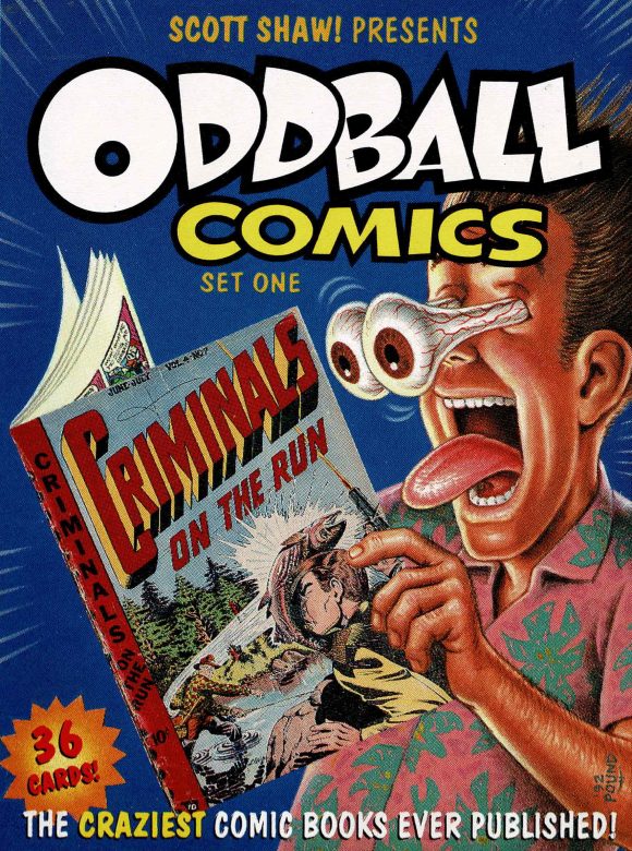 I used the Criminals on the Run #7 cover art on the box of my Oddball Comics trading cards, with new art designed by me and painted by my longtime friend John Pound, who also created Topps’ Garbage Pail Kids.
