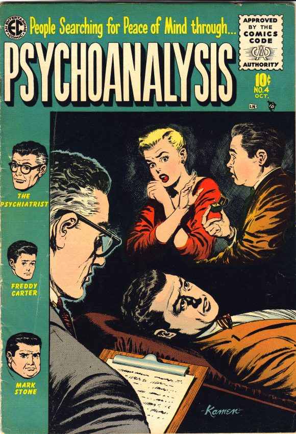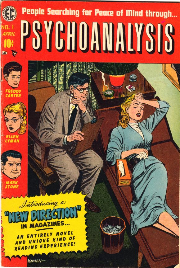 Psychoanalysis #1 (March-April 1955). Cover art by Jack Kamen, with coloring by Marie Severin and lettering by Ben Oda.