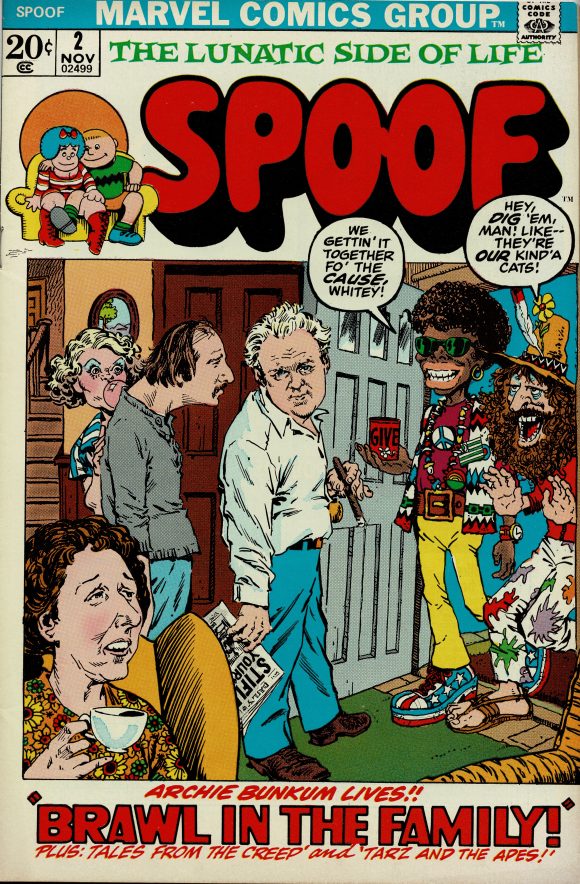 After making fun of comic books, Smilin’ Stan in 1970 hatched a new parody comic that was more Mad-ish, with parodies of television and films — Spoof, which lasted five issues over two and a half years. My hunch is that Stan Lee wanted to keep Marie busy at Marvel before she’d migrate to another publisher.