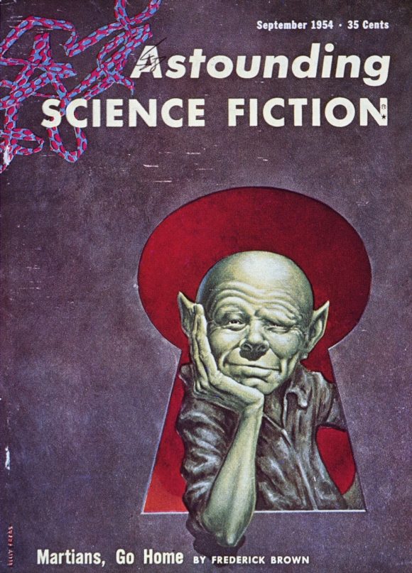 Astounding Science Fiction (September 1954). Another well-known Freas, illustrating Frederick Brown’s classic “Martians, Go Home.”