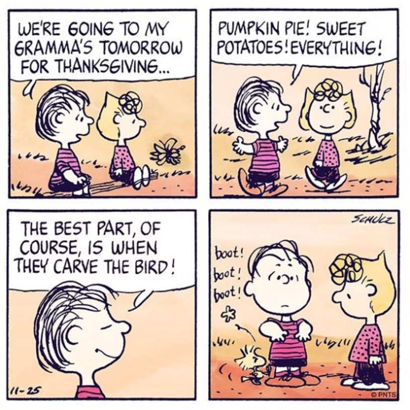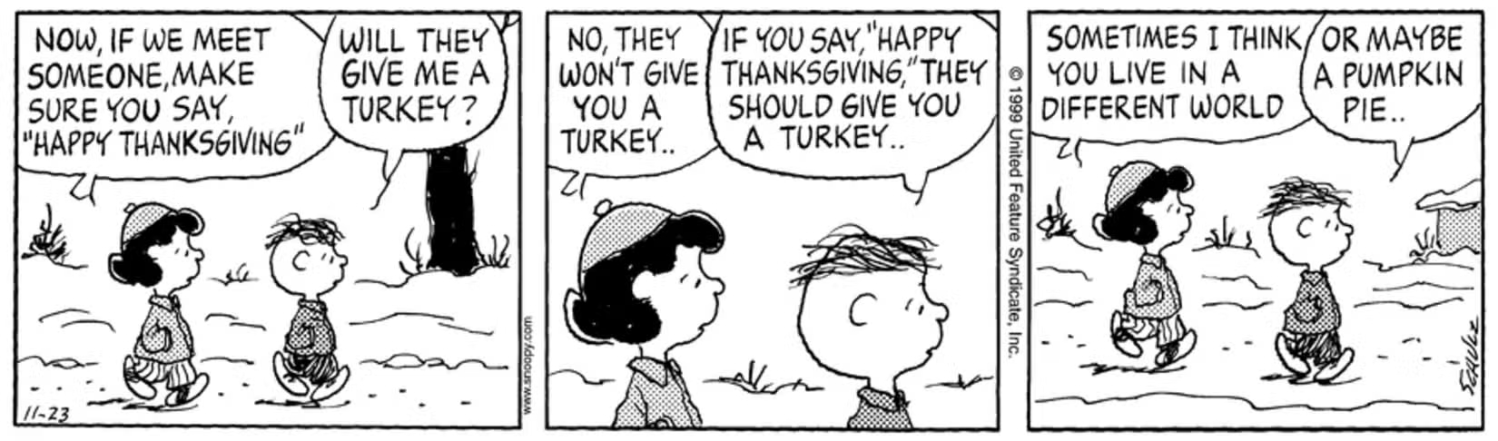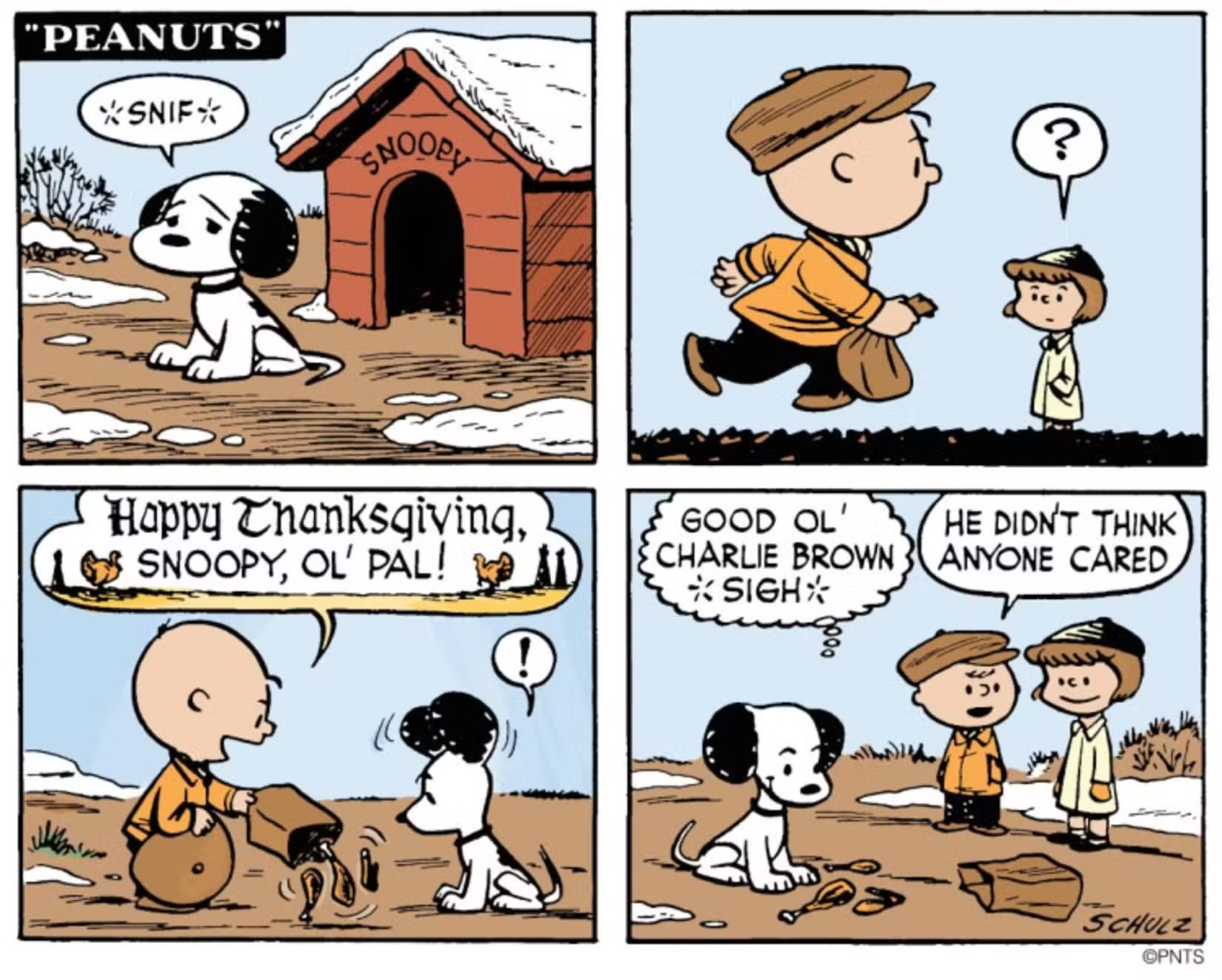 Here then, My 13 Favorite Peanuts Thanksgiving and Christmas Strips:
