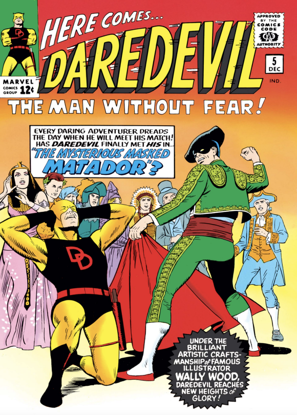 Daredevil #5 (December 1964), Marvel. Wally Wood begins his regrettably short run on the Man Without Fear, introducing the hero’s iconic red costume two issues later.