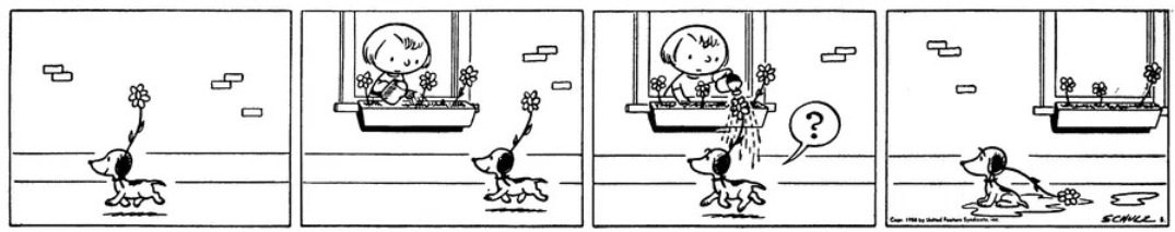 Next in importance in the strip’s first week was Snoopy, who premiered in the third daily strip.
