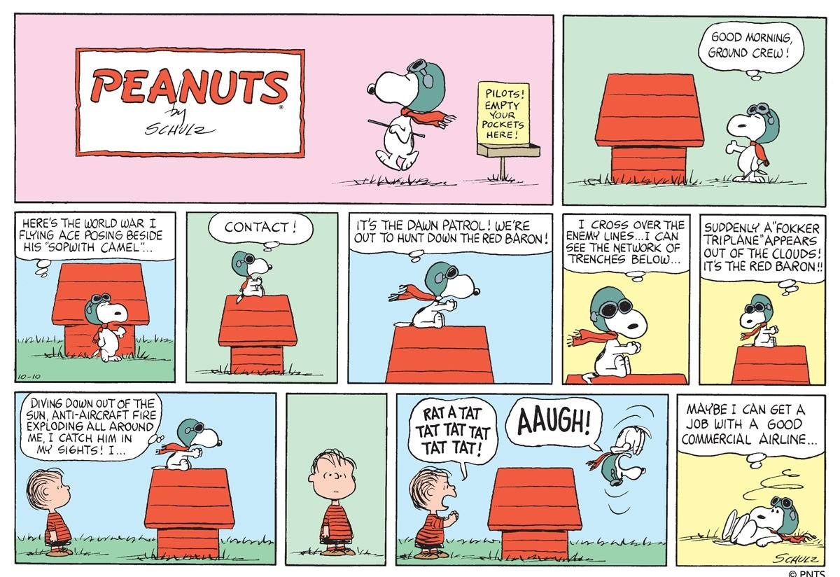 October 10, 1965. The first appearance of Snoopy vs. the Red Baron.