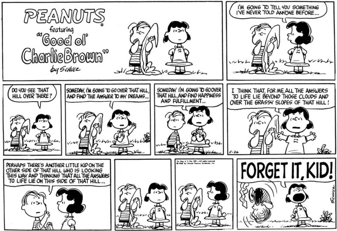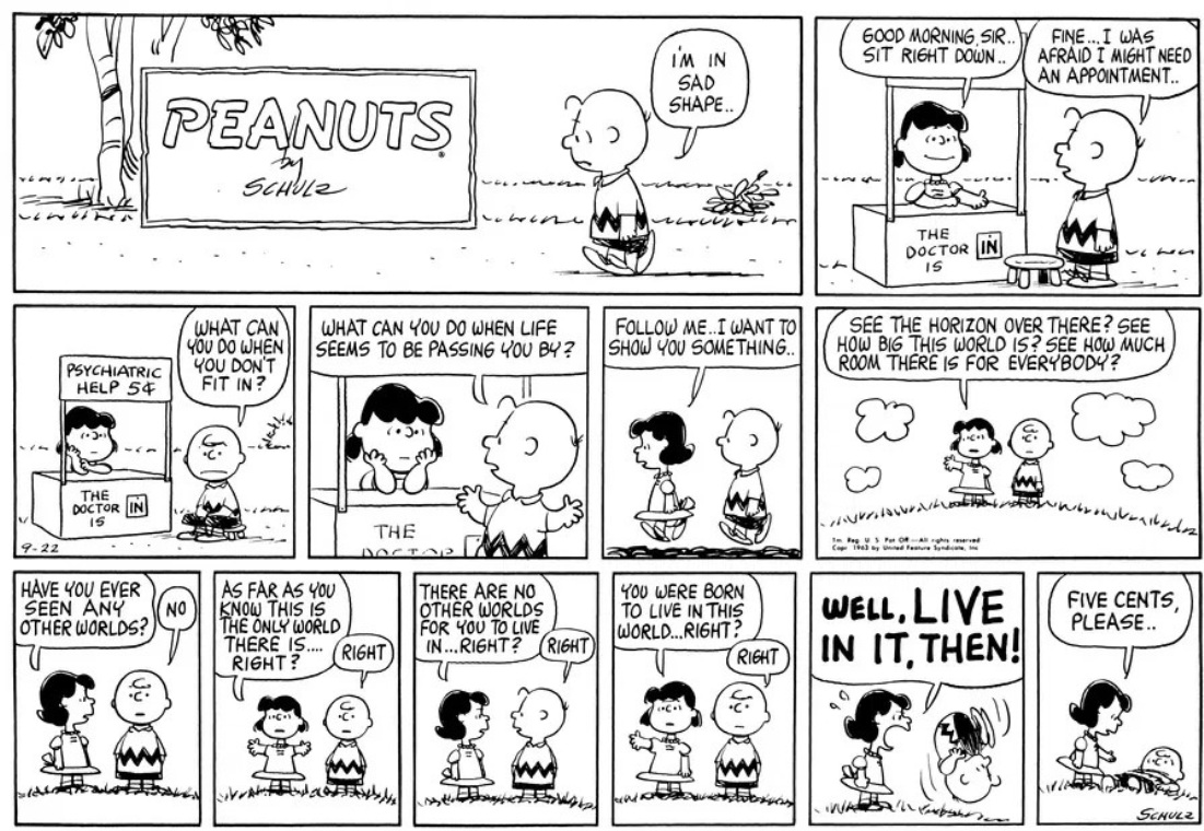 Also surprising is that, despite being a great grouch, Lucy could actually dispense incredible wisdom for only a nickel.