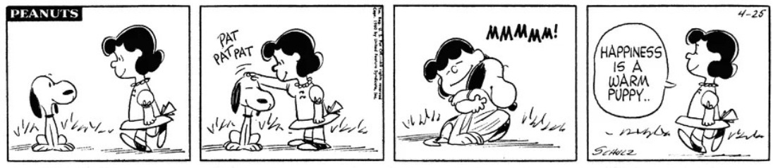 It was Lucy, however, who coined the phrase “Happiness is a warm puppy.”