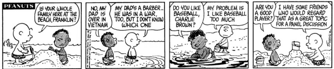 Franklin (later having a surname of “Armstrong,” after Robb Armstrong, an African-American cartoonist) made his debut in the strip in 1968, and it wasn’t long before letters of criticism began appearing at the United Features Syndicate office.