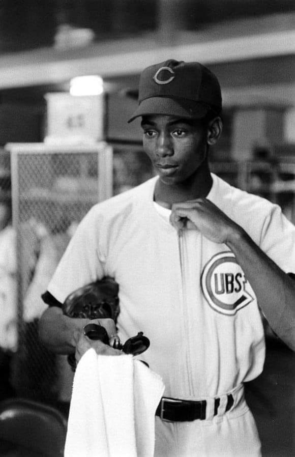 — Let’s play two! Ernie Banks on Sept. 17 became the Chicago Cubs’ first Black player. Three days later, he hit his first major-league homer.