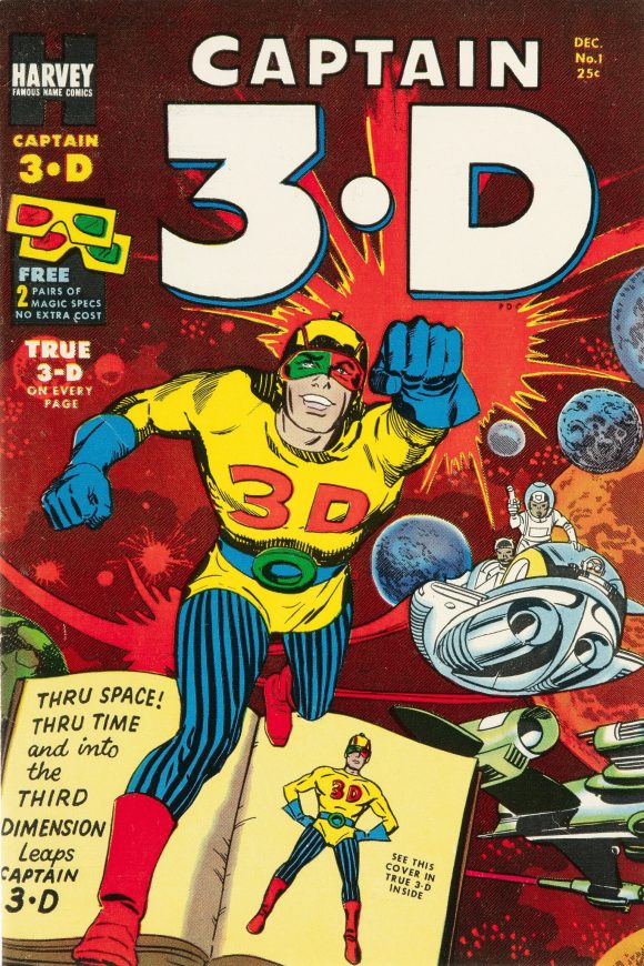Captain 3-D #1, Harvey. 3-D movies had taken over the theater — and this is just one of five different 3-D comics released this week. (And 14 this month!)