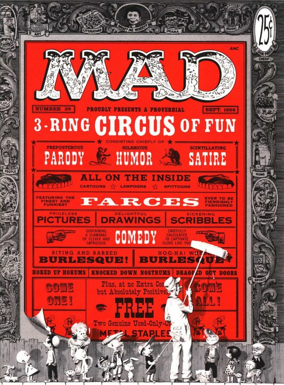 Mad #29, EC. A watershed issue: Al Feldstein’s first as editor-in-chief, and Don Martin’s first as a contributor. Feldstein took the mag, which was already ascendant under Harvey Kurtzman, and pushed it to a new level of notoriety and cultural impact over the next three decades or so. Wally Wood was still around but over the next several issues, Feldstein brought in Norman Mingo, Kelly Freas, Mort Drucker and Joe Orlando, among others.