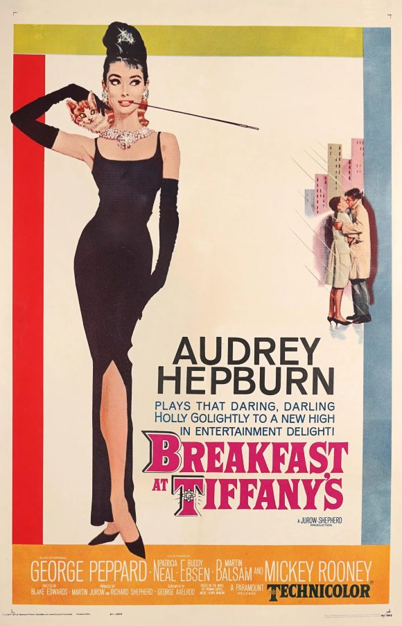 The amazing illustrator Robert E. McGinnis did the painting for the Breakfast at Tiffany’s poster. He also did posters for some of the Sean Connery Bond films as well as many of the Mike Shayne detective novels in the 1960s. If you’re not familiar with his name, you have probably certainly seen his work. Check him out.