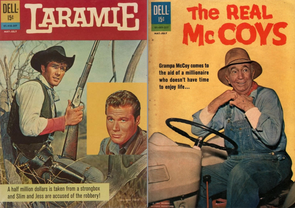 Cain’s Hundred #1, Follow the Sun #1, Laramie #1, The Real McCoys #1, Dell. A quartet of TV series adaptations debuted this week. Let’s see how they fared: Cain’s Hundred ran on NBC for one season (1961-62), 30 episodes, and two issues. Follow the Sun ran on ABC for one season (1961-62), 30 episodes, and two issues. Laramie ran on NBC for four seasons (1959-63), 124 episodes, and one issue, but was also in three issues of Four Color. The Real McCoys ran on ABC and CBS for six seasons (1957-63), 225 episodes, and one issue, but was also in four issues of Four Color.