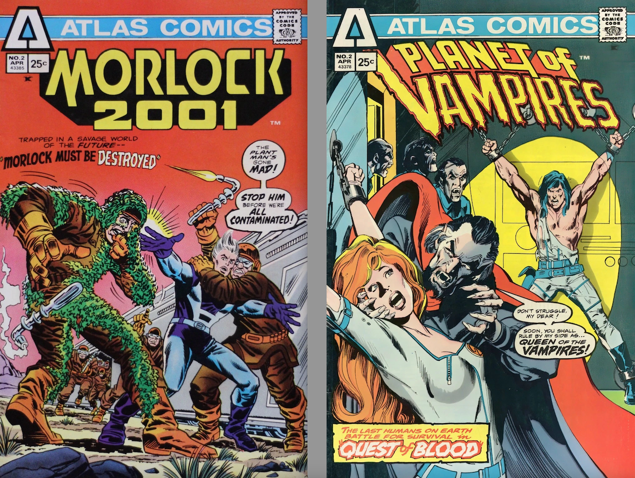 Moorlock 2001 #2 and Planet of Vampires #2, Atlas/Seaboard. Martin Goodman’s revenge play was out of the gate and already stumbling. Each of these titles would only last one more issue and the company would be dissolved by the end of 1975.