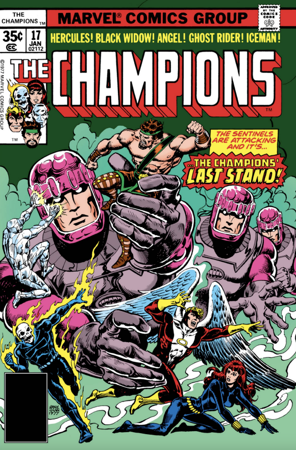 The Champions #17, Marvel. Is this the only time Hercules fought a Sentinel? I think so.