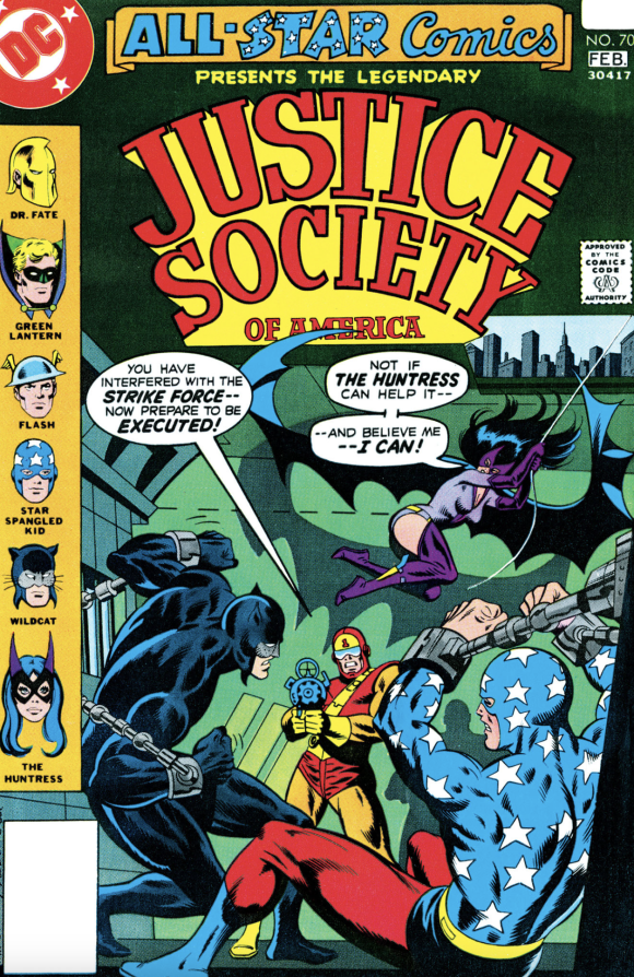 All-Star Comics #70, DC. I always loved how much the early Huntress appearances really played up her connection to the Batman. Look at that cape!