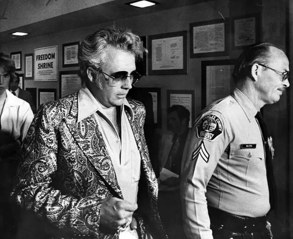 — The Evel Knievel Era — one of the defining pop cultural phenomena of the ’70s — came to an end, not with a bang, but with a pathetic whimper. On Oct. 13, Robert C. Knievel pleaded guilty to assaulting Shelly Saltman, a Hollywood exec who had written a tell-all book about the motorcycle daredevil’s, much-hyped, ill-fated 1974 jump over Snake River Canyon. The following month, Knievel was sentenced to 180 days in jail, and lost all his sponsors.