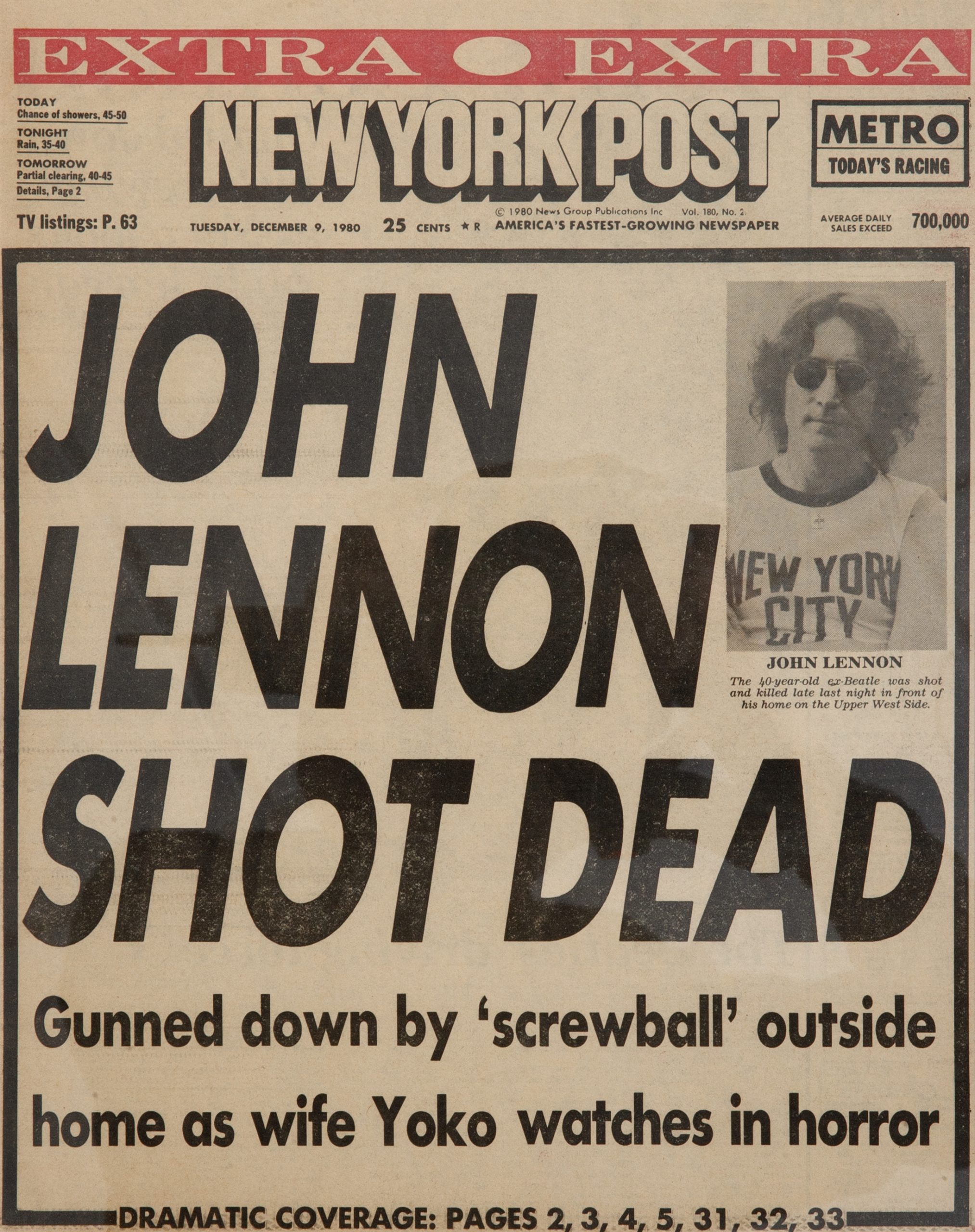 So, let’s set the scene: John Lennon, the former Beatle and one of the most prominent countercultural forces in the world, was shot dead the night of Dec. 8 as he was coming home to the Dakota apartment building on Manhattan’s Upper West Side. Lennon, 40, and his wife, Yoko Ono, had gotten out of a limo and were walking toward the building’s entrance when a lunatic named Mark David Chapman shot him four times in the back. Just hours earlier, Lennon had autographed for Chapman a copy of his recently released album Double Fantasy.