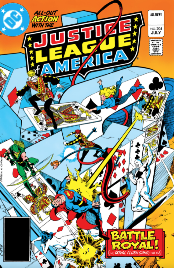 Justice League of America #204, DC. Wonderfully intricate cover work by the mighty George Perez. Always loved when he’d draw the Royal Flush Gang.