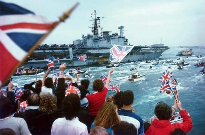Brits ship out from England on April 5, amid cheering throngs.