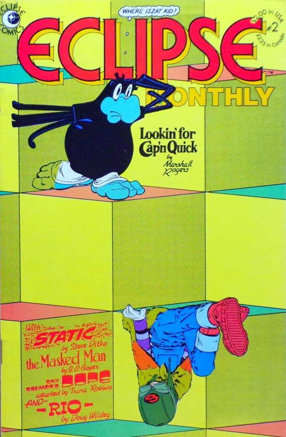 Eclipse Monthly #2, Eclipse. Featuring Marshall Rogers’ Foozle! But here’s some of the other talent aboard this issue: Steve Ditko, Trina Robbins, Doug Wildey, cat yronwode, and Dean Mullaney.