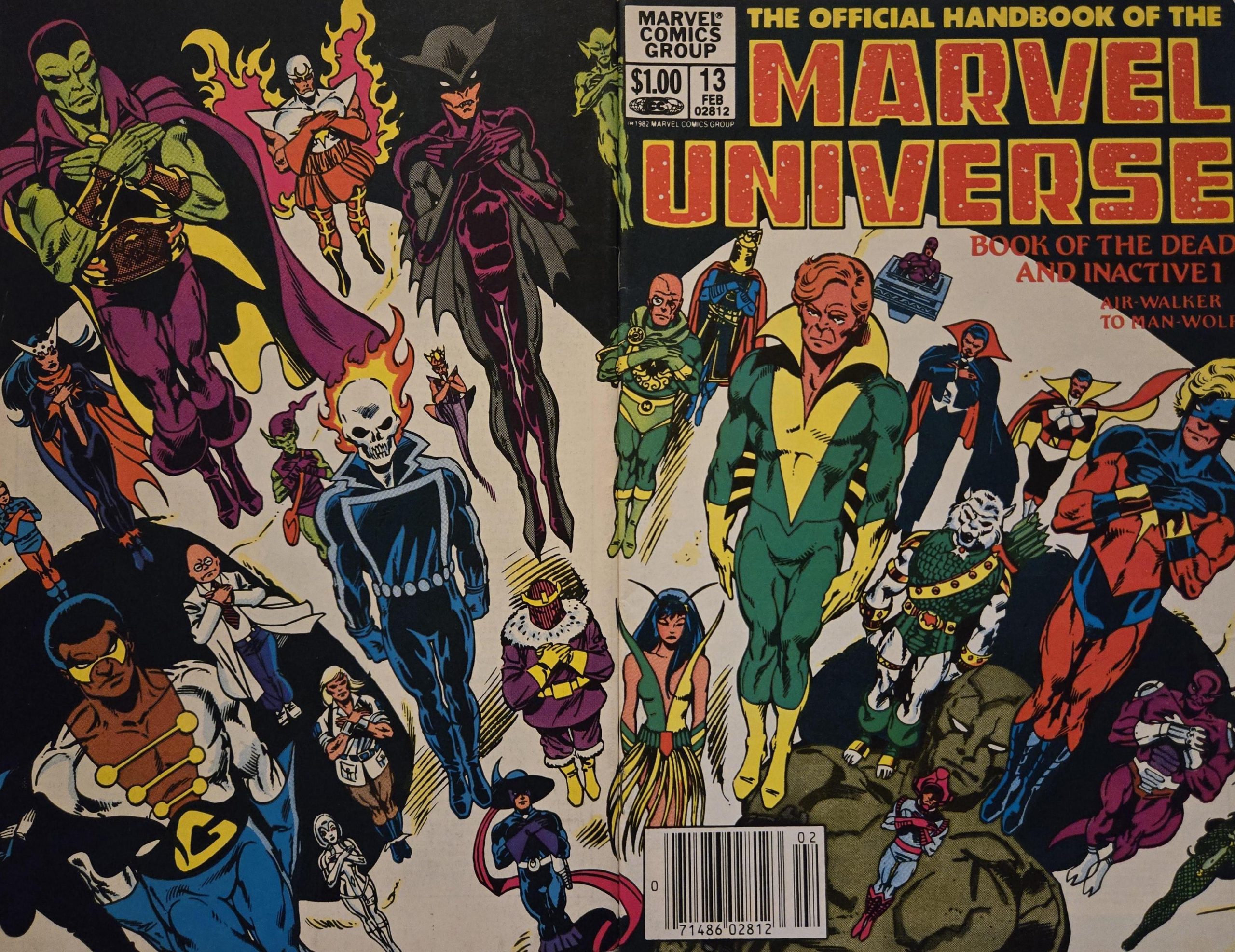 The Official Handbook of the Marvel Universe #13, Marvel. Here’s a fun game. How many characters on this cover have come back from the dead?