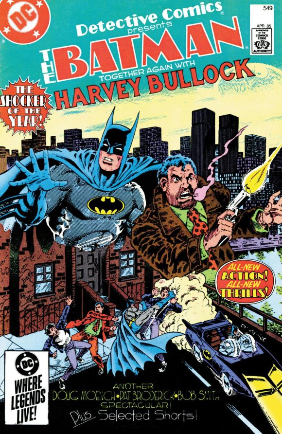 Detective Comics #549, DC. Up to this point, Detective Harvey Bullock was generally portrayed as a one-note character, an asshole Gotham cop who really disliked Batman. He was also originally corrupt, and undercut Commissioner Gordon to the point where the latter had a heart attack. Bullock softened somewhat after that, but this issue, by Doug Moench, Pat Broderick and Bob Smith, substantially broadened his character, showing him to be a devoted fan of old movies and a man of emotional depth.